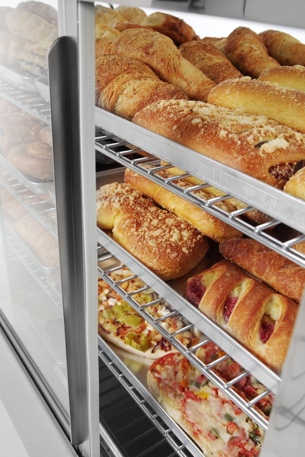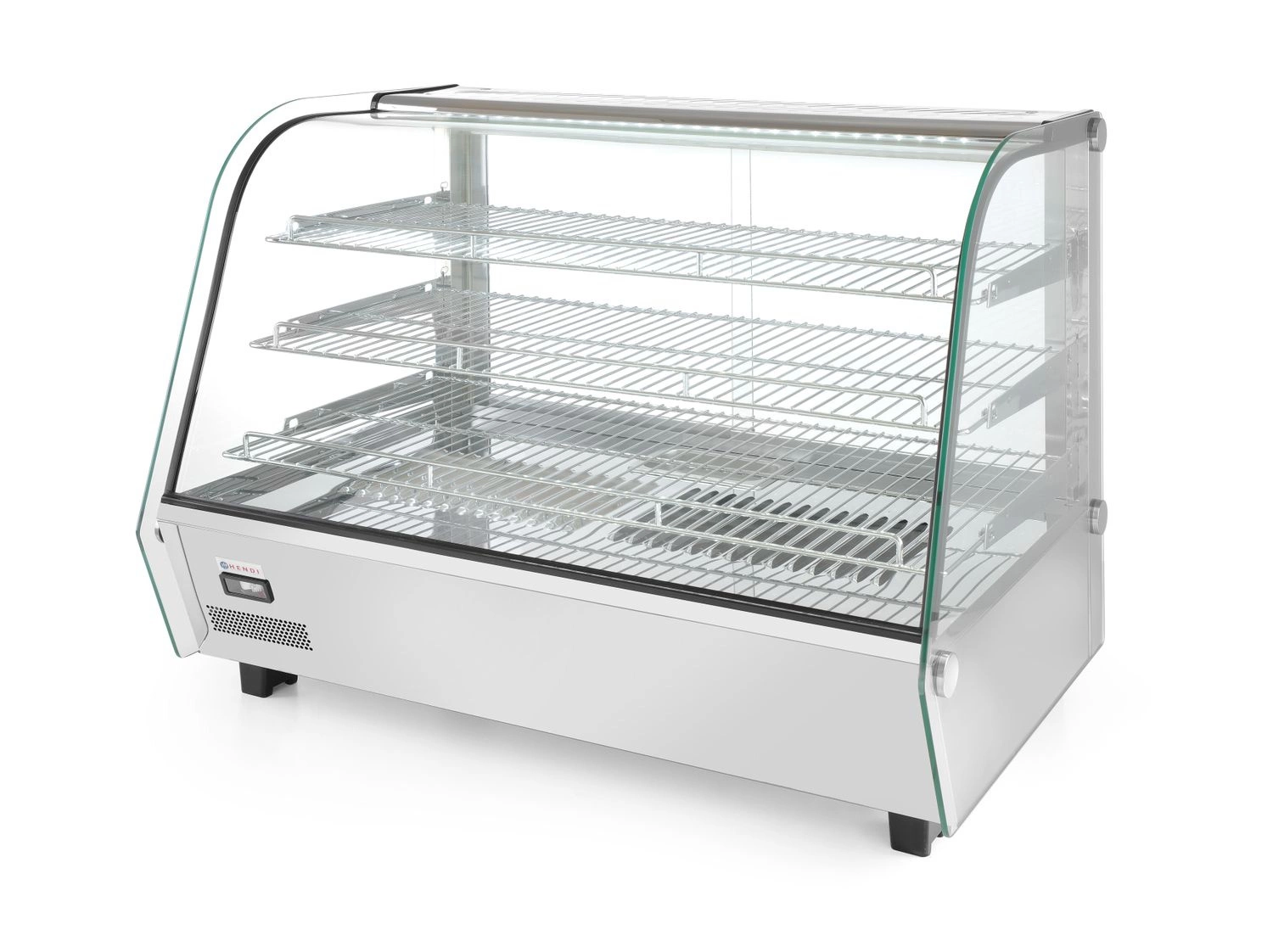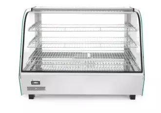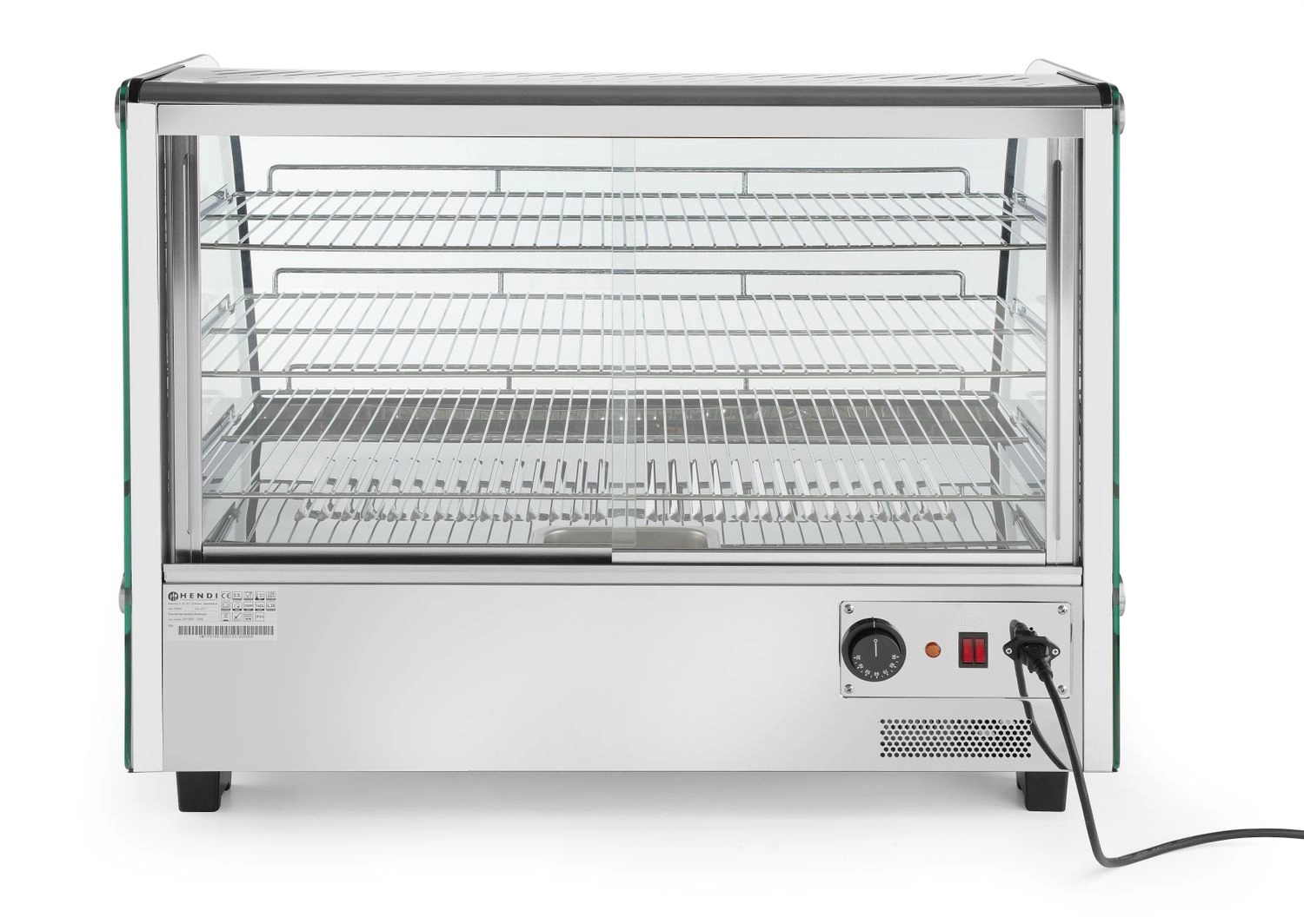 Nastavitelná ohřívací skříň s objemem 160 l S podhledovým, zakřiveným a bezpečnostním sklem. Zadní dvoudílné posuvné dveře. Konstrukce z nerezové oceli. Osvětlení LED Na gór straně přihrádky. 3 chromované a nastavitelné podložky. Knoflík pro regulaci teploty a analogový teploměr.