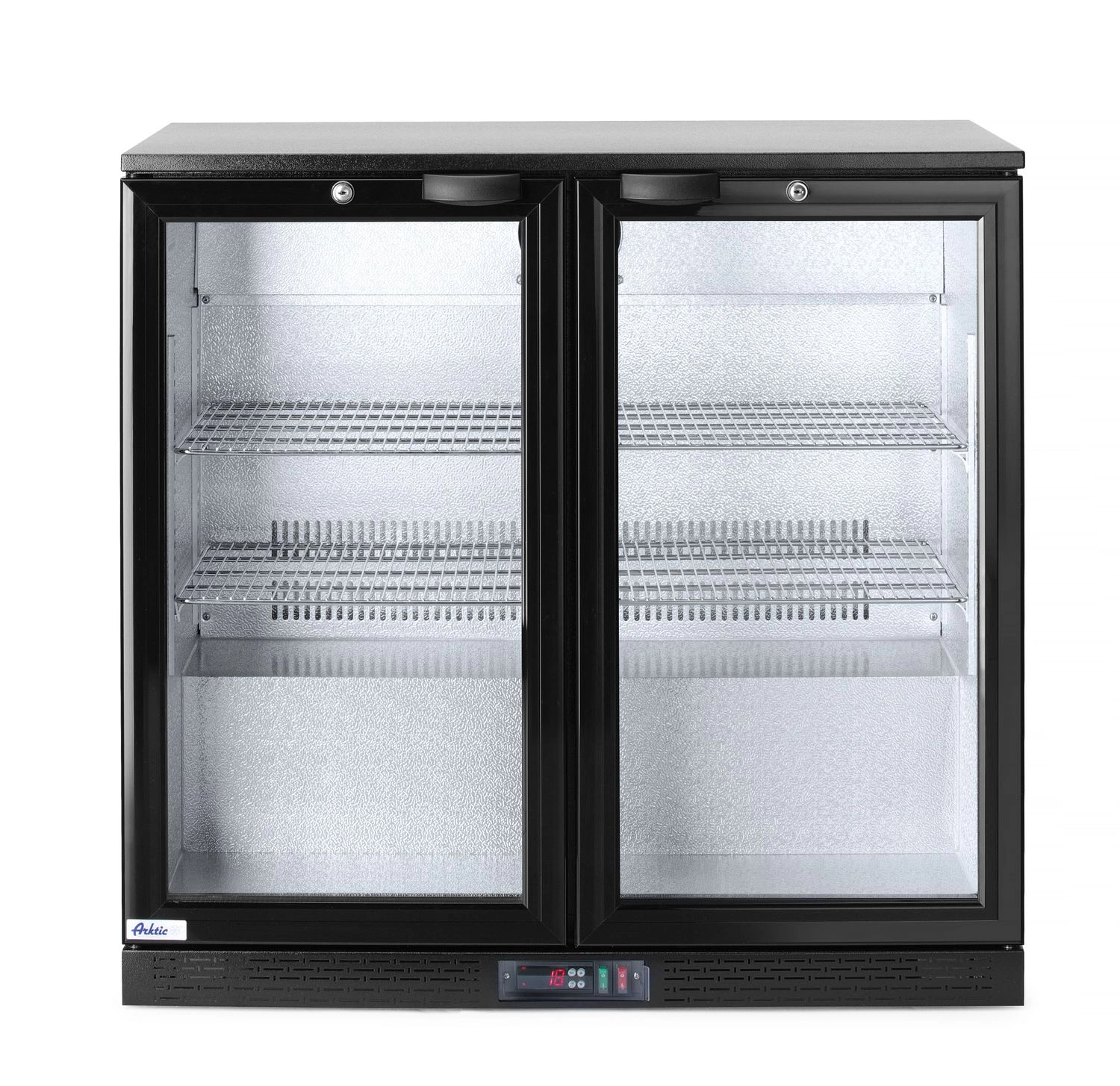 Dvoudveřová barová chladnička s kapacitou 228 litrů na lahvové nápoje. . Je vybaven 4 chromovanými pónoži. LED osvětlení v komoře. Elektronický termostat. Digitální ukazatel teploty. Statické chlazení, dodatečně podporované ventilátorem. černě práškově lakovaný ocelový kryt. Dveře z tvrzeného skla v plastovém rámu se zámkem. Vnitřek komory z extrudovaného hliníku. Agregát umístěný pod komorou.