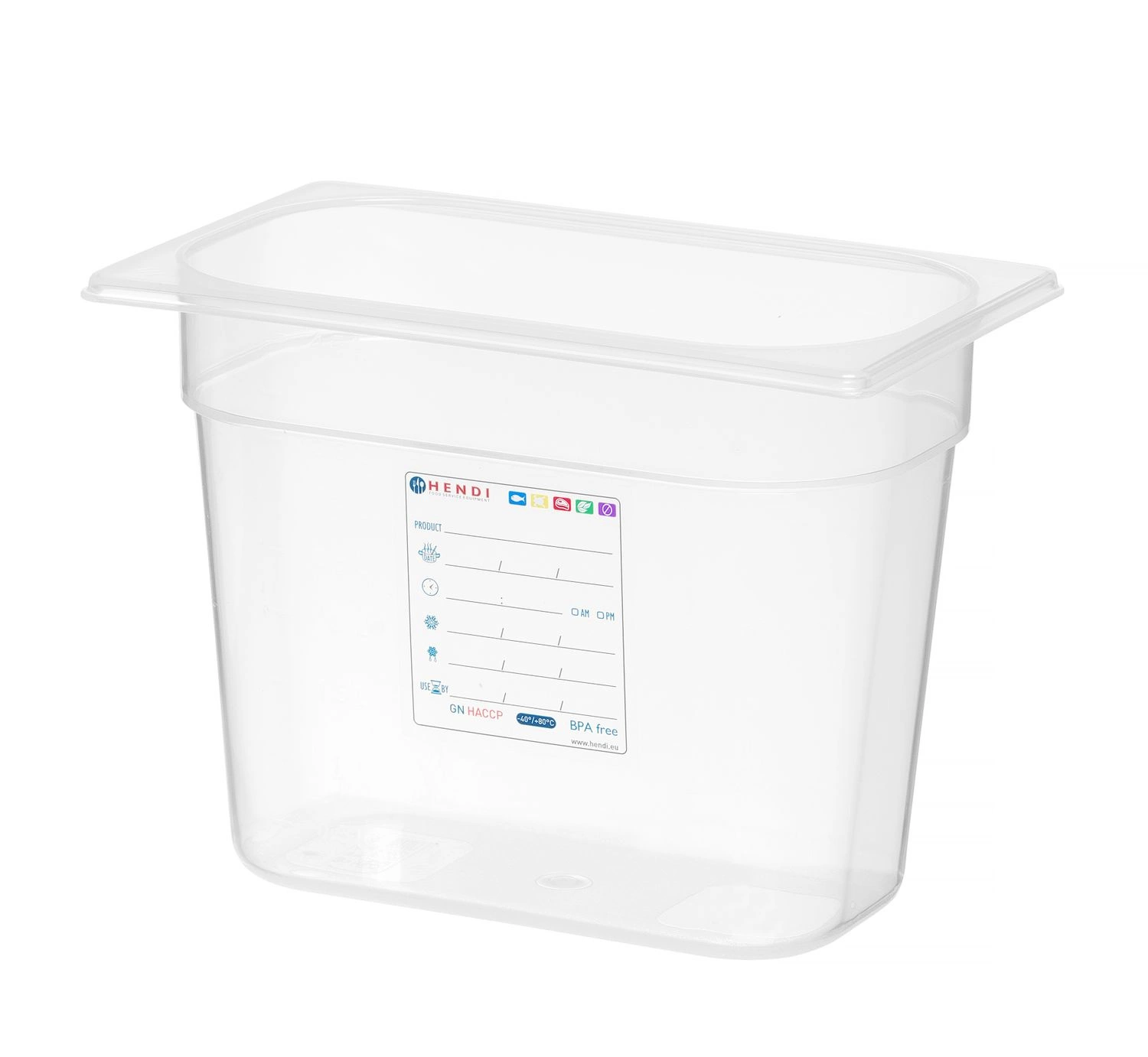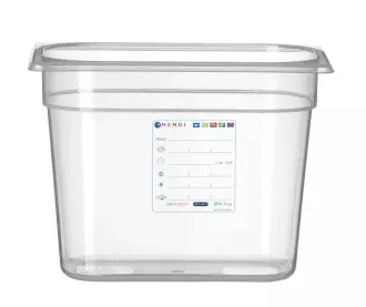 GN 1/4 kontejner HACCP s hloubkou 20 cm z průhledného polypropylenu.  Vlisovaný štítek pro sledování procesu skladování. Nepohlcuje pachyóa příchutěóa.