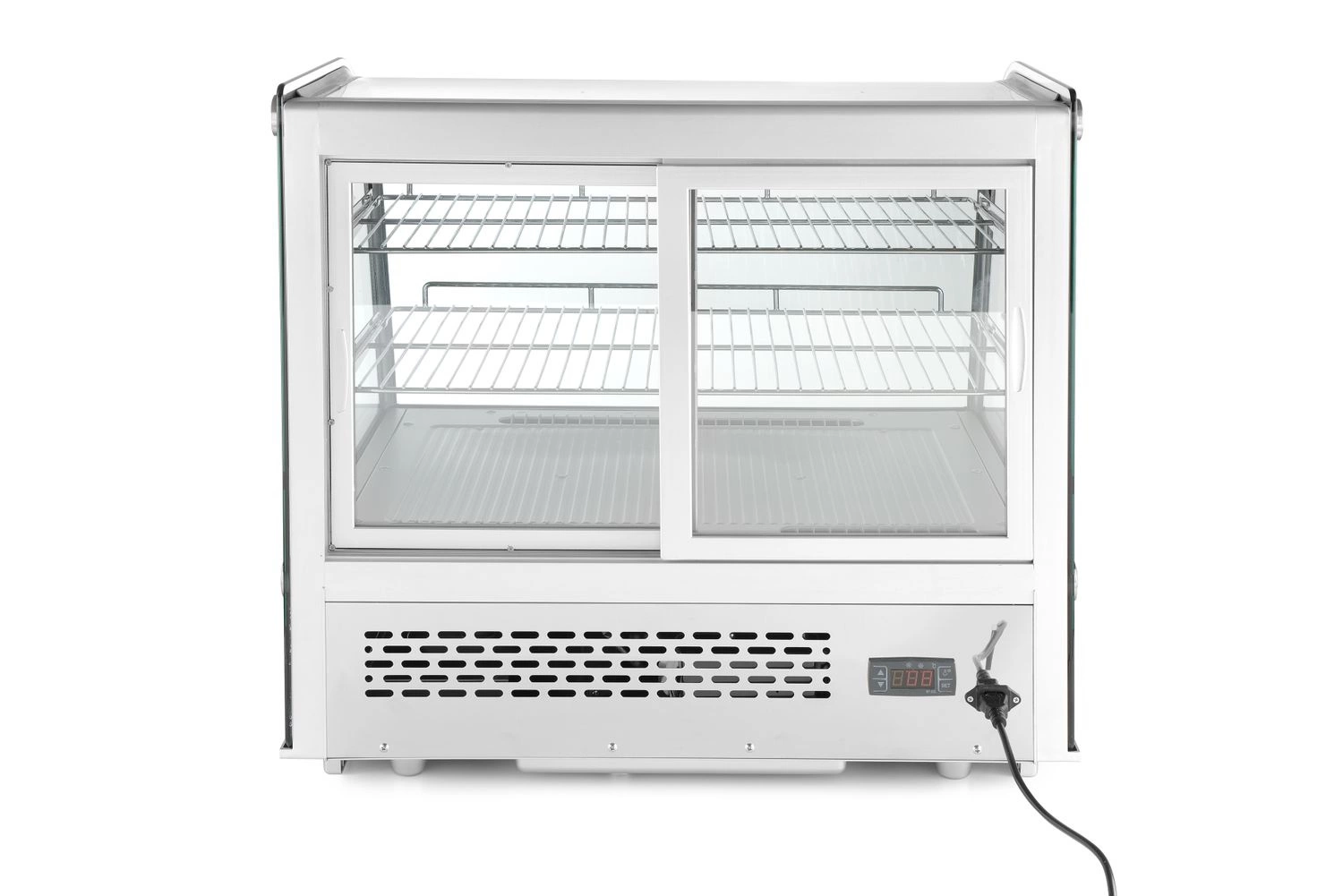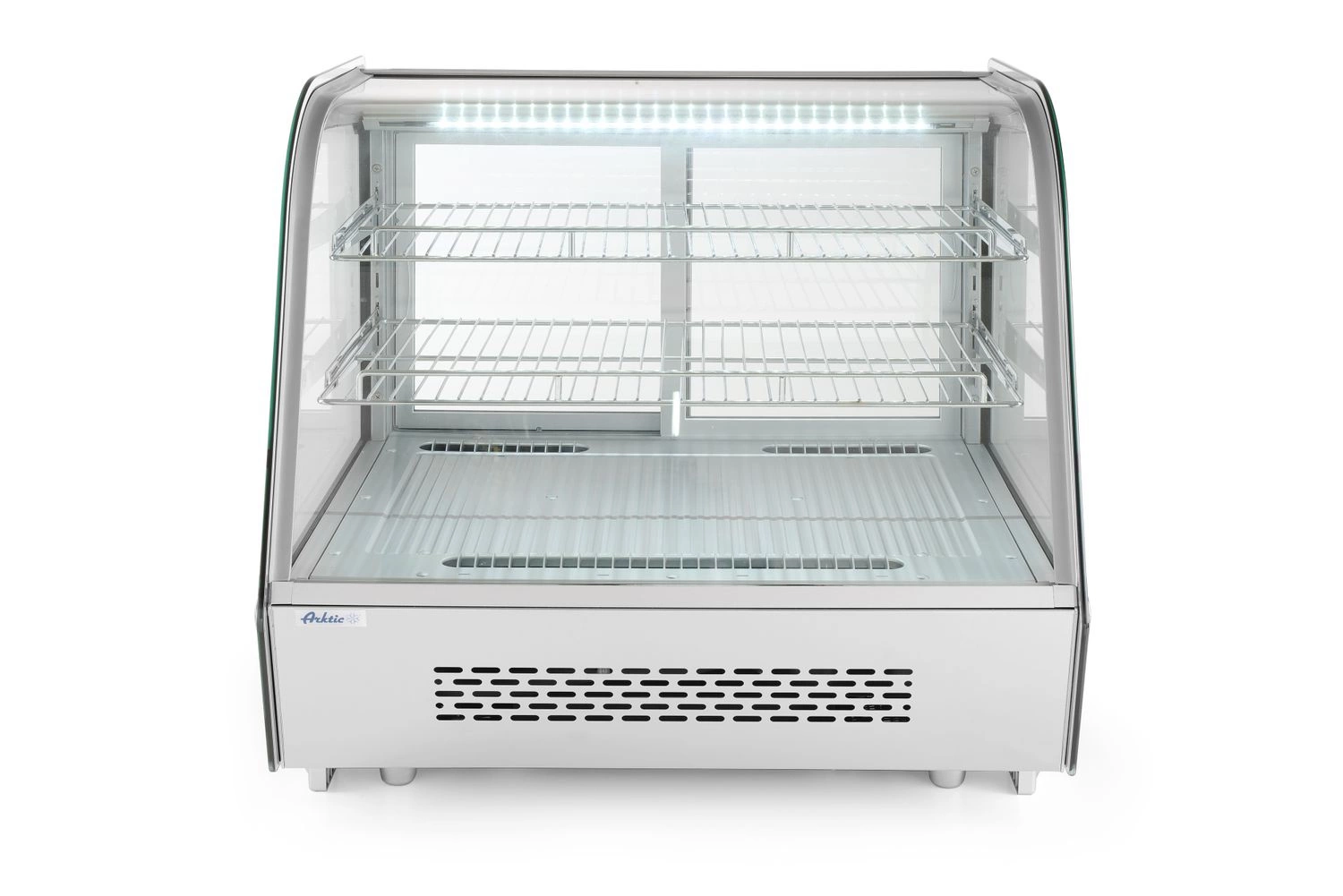 Chladicí vitrína nad hlavou s objemem 120 litrů. Konstrukce z nerezové oceli. Spodní zakřivené čelo z bezpečnostního skla. Zadní dvoudílné posuvné dveře. LED osvětlení v řadě prostoru. 2 chromované, nastavitelné pó³. Digitální displej, elektronický termostat. Nucené chlazení s automatickým odmrazováním.