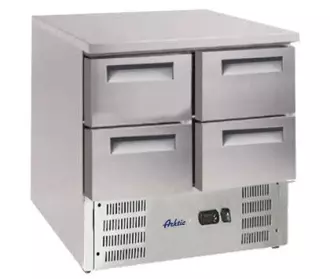 Chladicí jednotka se 4 zásuvkami značka Arktic. Vnitřní a vnější plášť z vysoce kvalitní nerezové oceli AISI 201. Plochá horní část z nerezové oceli vyplněná dřevotřískovou deskou pro zpevnění konstrukce. Statické chlazení podporované vnitřním ventilátorem. Zásuvky jsou navrženy tak, aby se do nich vešly nádoby 4x1/1, 2x1/2 nebo 3x1/3 GN.