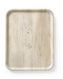 Laminovaný servírovací tác s potiskem dřeva. Odolný vůči chemikáliím, skvrnám a poškrábání. Barva světlý dub.