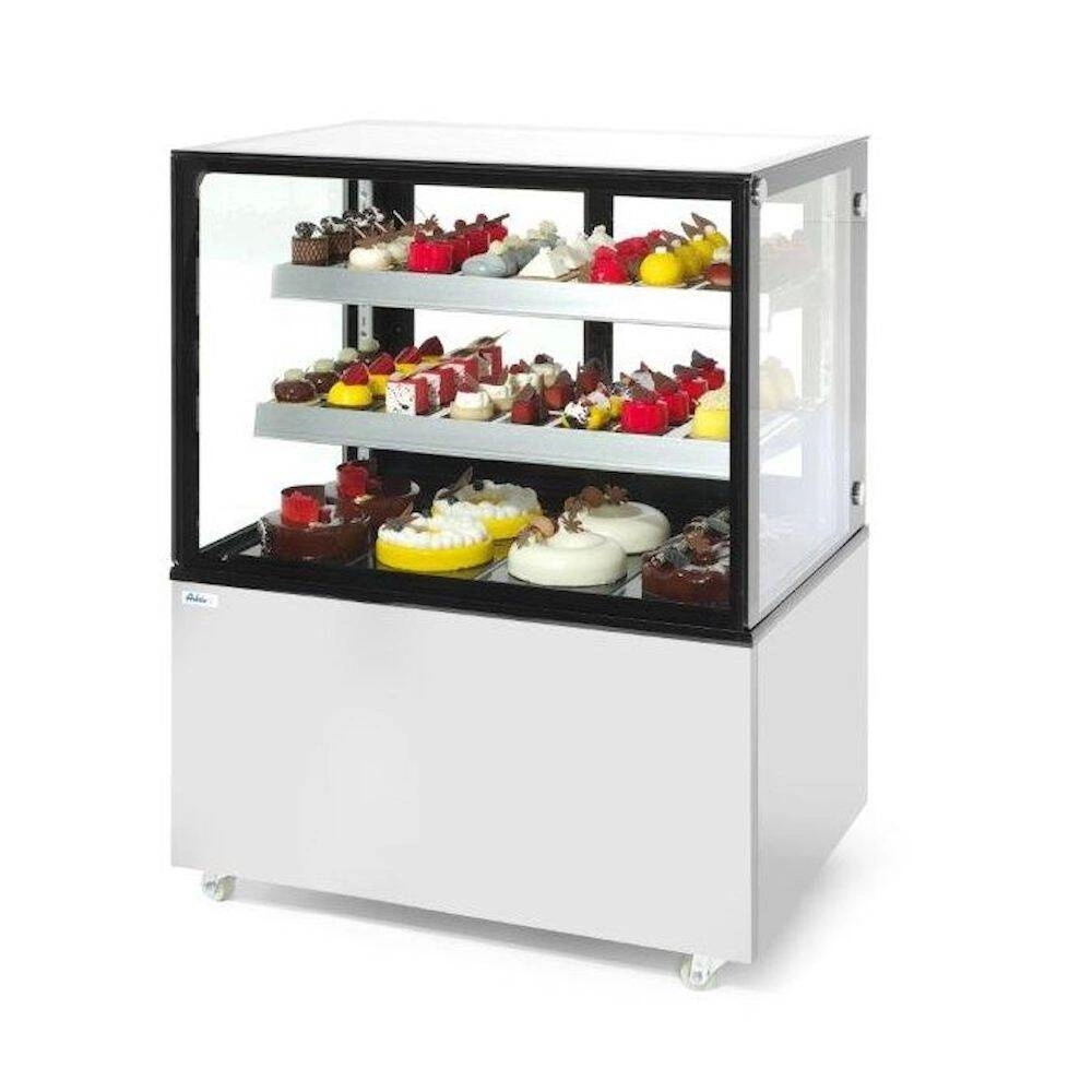 Chladicí vitrína o objemu 510 l vybavená 2 nastavitelnými skleněnými panely mírně nakloněnými směrem k zákazníkovi. Skříň z nerezové oceli s podóy skleněnými panely. Přístup do interiéru zadními dvoudílnými posuvnými dveřmi. Nucené chlazení s automatickým odmrazováním, kompresor umístěný pod prostorem. Jasné osvětlení LED Na góřádku a pod každým póřádkem. Je vybaven 4 cókami, z nichž 2 mají brzdy.