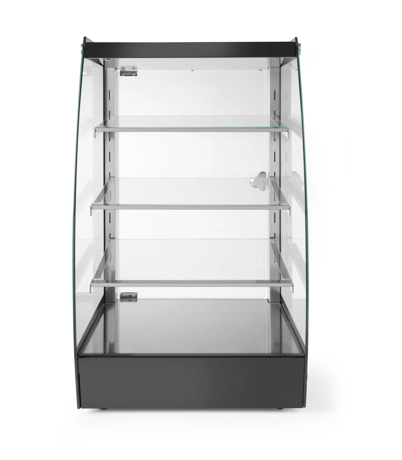 Neutrální samoobslužná vitrína o objemu 75 litrů. Ideální pro velká i malá stravovací zařízení, čerpací stanice, cukrárny, tj. všude tam, kde se prodávají předpřipravené výrobky. Je ideální pro čerpací stanice, malé obchody, kancelářské kuchyně, jídelny a kantýny pro prezentaci všech druhů potravin, které nevyžadují zvláštní podmínky skladování, jako jsou balené cukrovinky, křehké pečivo, kynuté cukrovinky atd.