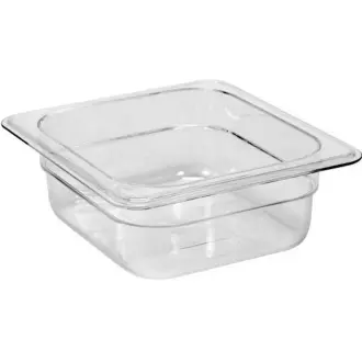 GN 1/6 cateringová nádoba o hloubce 6,5 cm a objemu 1 litr. Nádoba je vyrobena z nejkvalitnějšího polykarbonátu PC, je velmi pevná a odolná proti poškození. Hladký povrch a hrany a zaoblené rohy usnadňují udržování nádoby v čistotě. Polykarbonát neabsorbuje žádné látky ani pachy a nezkresluje chuť skladovaných potravin. Teplotní odolnost od - 40oC až 99oC, takže nádobu lze uchovávat v chladu i v ní skladovat teplé potraviny. Nádoba není určena pro použití v bemarech a pecích KP. Nádoby jsou navíc vybaveny litrovou stupnicí, aby bylo možné kontrolovat hladinu obsahu. Nádoba má po obvodu dodatečný reliéf, který zpevňuje její konstrukci, zabraňuje pomačkání při používání a umožňuje stohování. Nádobu lze mýt v myčce nádobí.