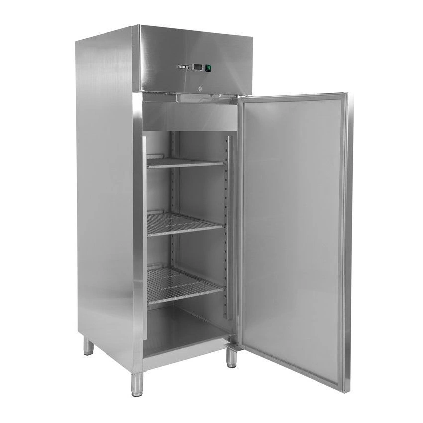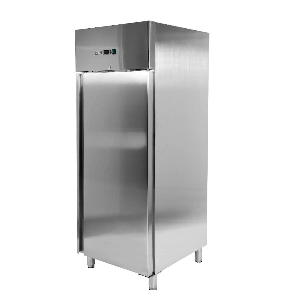 Nerezová mrazicí skříň o objemu 600 l. Vnitřní a vnější plášť je vyroben z nerezové oceli ss201. Samozavírací dveře se zámkem mají pohodlné madlo pro otevírání. Skříň je vybavena 3 roštovými policemi potaženými PVC s nosností 40 kg – při rovnoměrném rozložení. Chladicí komora má LED osvětlení. Možnost skladování GN nádob 2/1. Zařízení je postaveno na 4 nožkách s možností nastavení výšky 12-18 cm. Horní chladicí agregát o výkonu 450 W využívá chladivo R290, je určený pro práci ve 4. klimatické třídě – při maximální okolní teplotě 30o C a relativní vlhkosti 55 %. Zařízení má elektronický ovladač s digitálním displejem teploty. Průměrná roční spotřeba energie je 2738 kWh.
