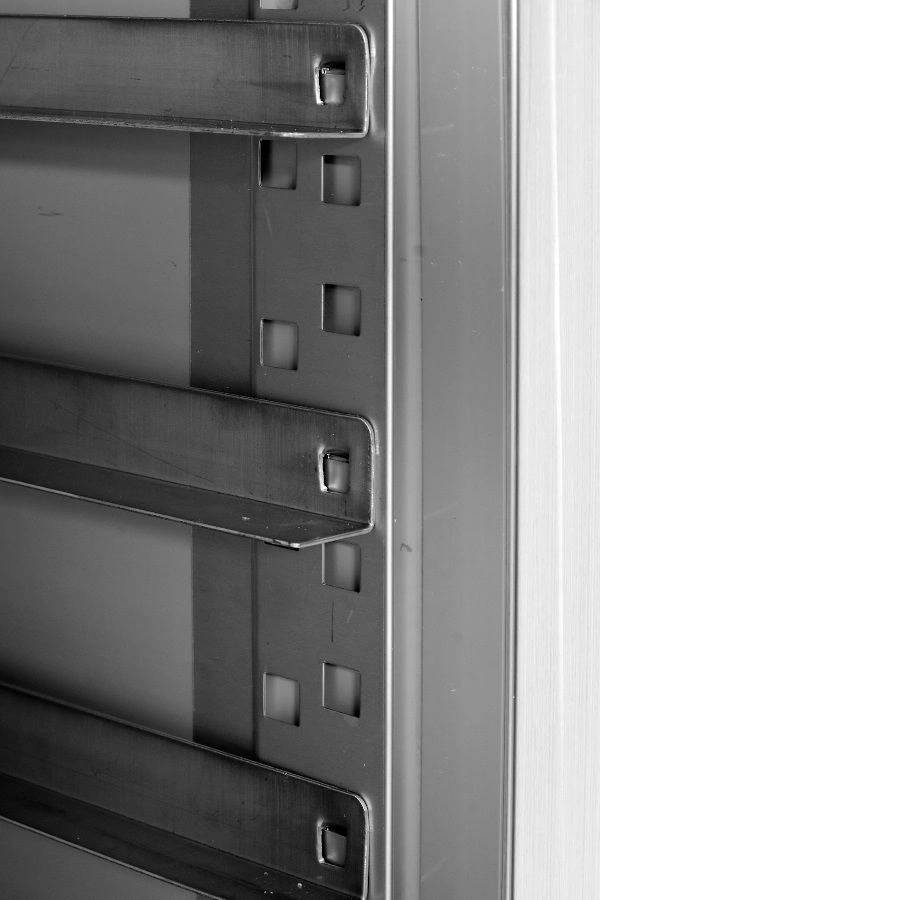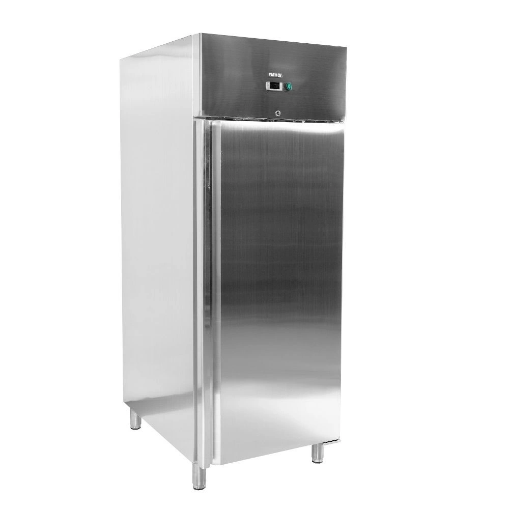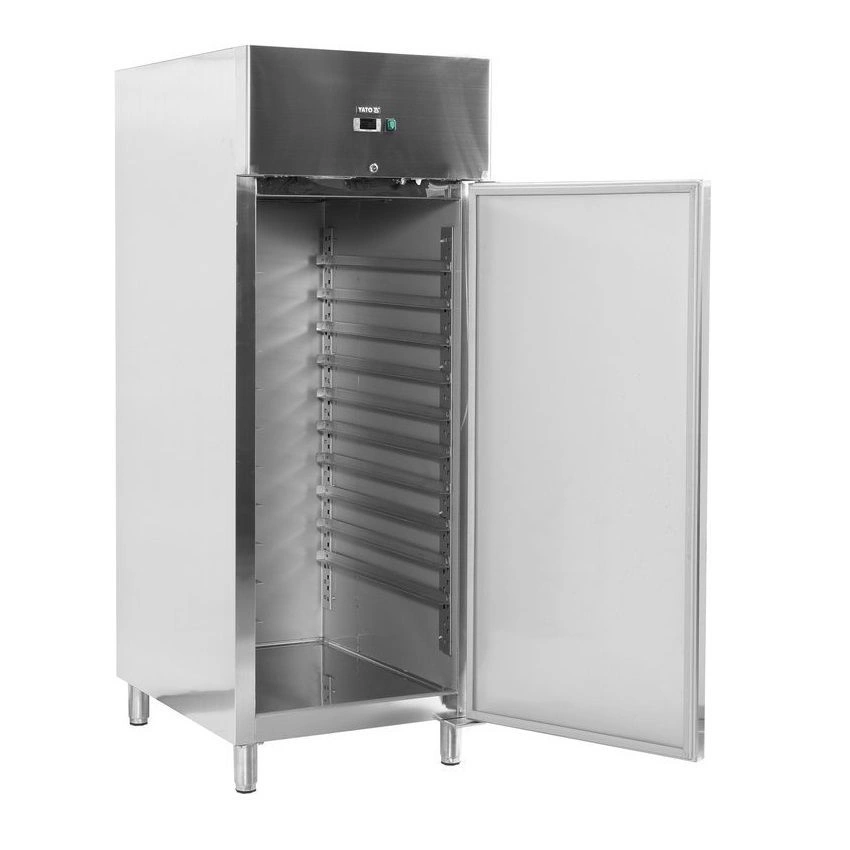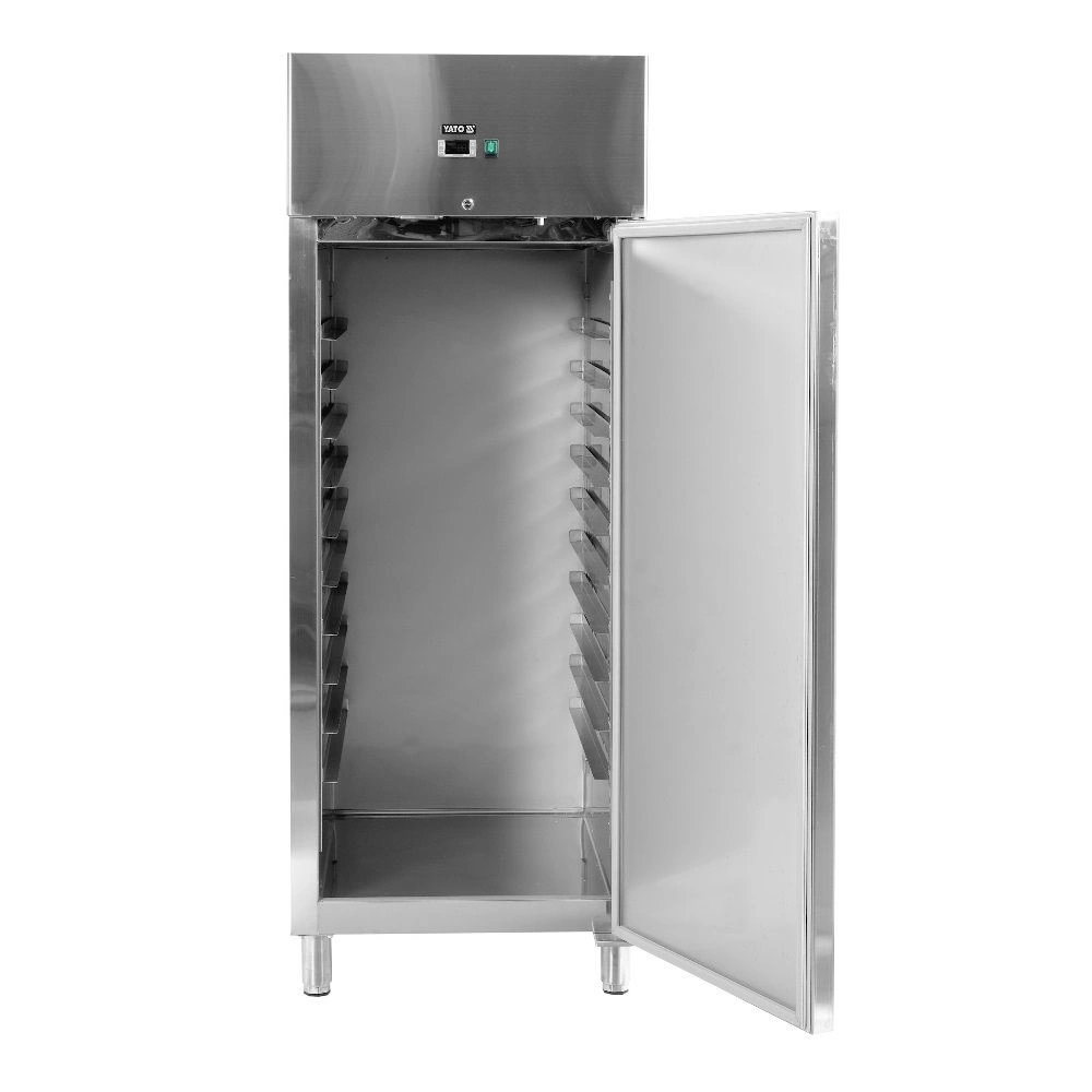 Pekařská chladicí skříň značky YATO. Objem 737 l. Vnitřní a vnější plášť je vyroben z nerezové oceli ss201. Skříň má 10 úrovní s vodítky o rozměrech 60x80 cm, přizpůsobenými pro pekařské plechy s nosností 40 kg každý, s možností 34-stupňového nastavení vodítek. Komora je vybavena LED osvětlením. Samozavírací dveře se zámkem, vyměnitelné magnetické těsnění.