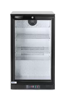 Iceboxóbar s objemem 118 litrů Pro nápoje v lahvích. Chladnička je vybavena dvěma chromovanými pónoži.  LED osvětlení prostoru. Elektronický termostat. Digitální ukazatel teploty. Statické chlazení, kterému navíc napomáhá ventilátor. Černě lakované ocelové pouzdro. Dveře z tvrzeného skla v plastovém rámu  se zámkem. Vnitřek komory z extrudovaného hliníku.