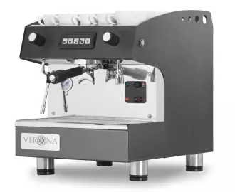 Kávovar ROMEO, 1skupinový, automatický. V černé barvě. Profesionální zpracování z nerezové oceli. Automatické a półautomatické ovládání. Manuální dávkování velikosti kávy a automatické doplňování vody. Ideální do baróv, kaváren a restaurací.