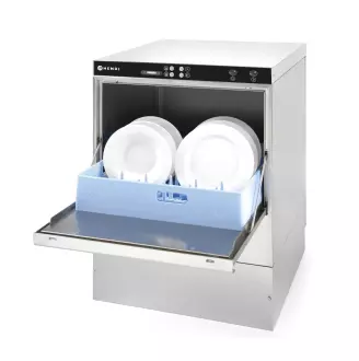 Hendi catering myčka nádobí Určeno k mytí skla, šálků, talířů a příborů. Pouzdro z nerezové oceli AISI 304. Elektromechanické ovládání. Dvoustěnná plná dvířka. Mycí cyklus trvá přibližně 120 sekund. Mytí nádobí probíhá při teplotě přibližně 62ºC, zatímco oplachování – při teplotě přibližně 85ºC. Spotřeba vody je 2-2,5 litru na jeden mycí cyklus. Kapacita až 30 košů/hod. Oddělená mycí a oplachovací ramena z nerezové oceli.