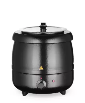 Elektrická konvice na polévku Ideální pro bufet. Kryt z černě lakované oceli. Víko a nádoba na polévku z nerezové oceli.