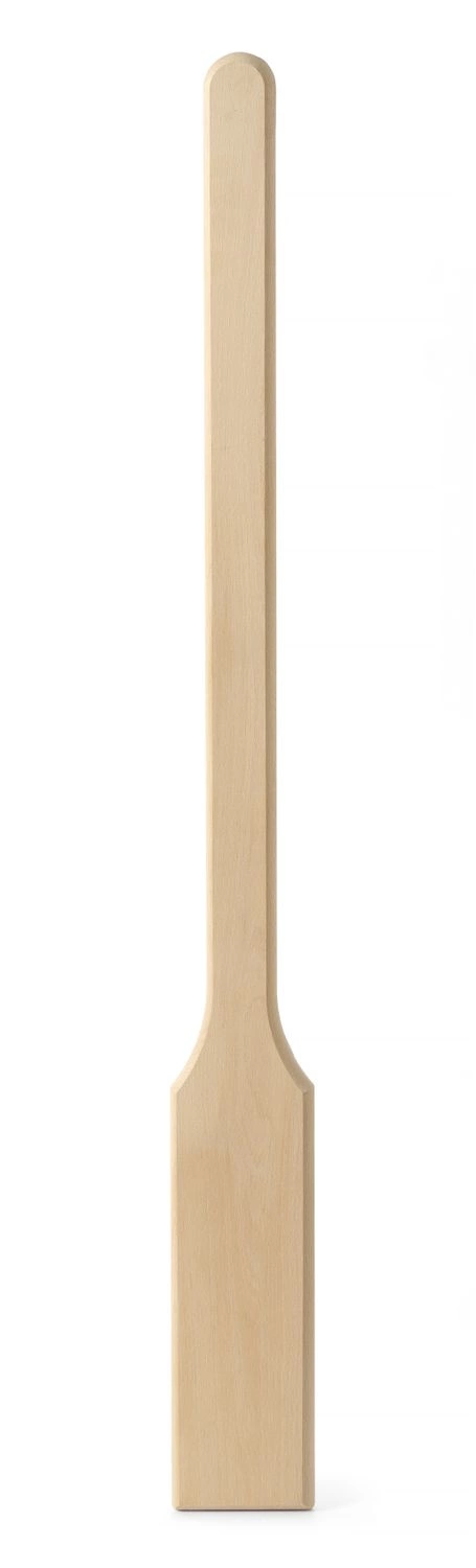 Mixér o délce 100 cm. Je vyrobena z jednoho kusu surového bukového dřeva, takže je mnohem odolnější než jiné lepené výrobky. Určeno k míchání velkého množství tekutinóv hrncích, kotlích nebo pánvích.