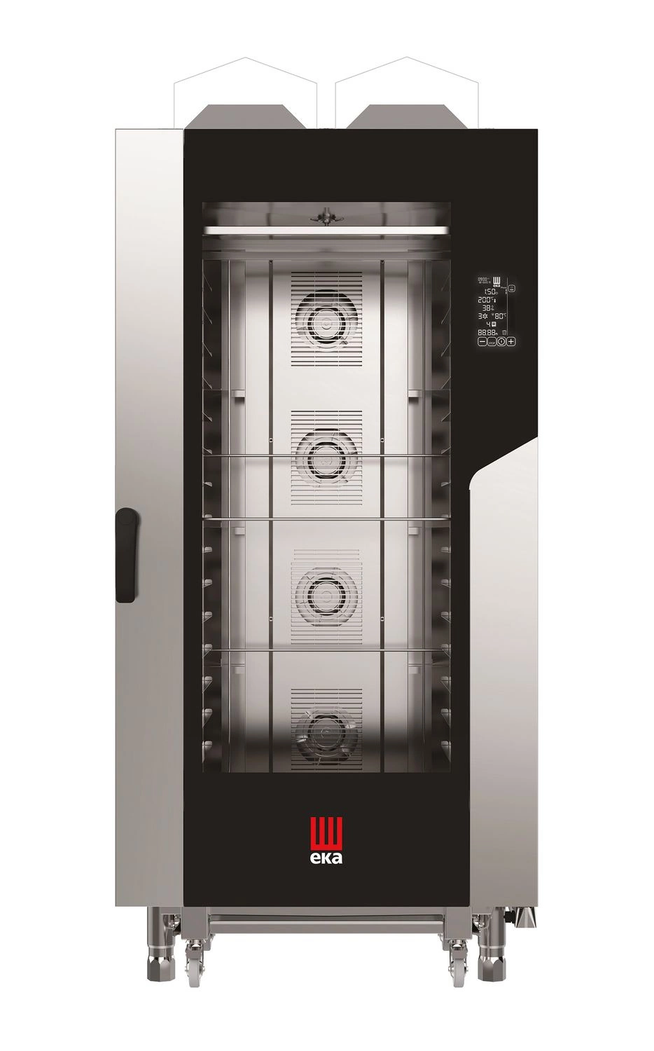 Plynová kombinovaná parní trouba Millenial Black Mask Bakery. Vhodná až pro 20 plechů o rozměrech 600 × 400 mm. Trouba má černý, 7palcový a dotykový ovládací panel, kterýóy po vypnutí zcela zmizí v černých dvířkách. Funkce Airflowlogic je řešení, které díky přepracovanému designu odsavače zlepšilo cirkulaci vzduchu ventilátorem. Humilogic je nový zvlhčovací systém, který přivádí vodu přímo z ventilátoru. Tím je zajištěna vysoká úroveň vlhkosti, která snižuje spotřebu vody. Drylogic je rovněž inovativní systém. Ventilór řízený počítačem kontroluje výměnu vzduchu v komoře a odstraňuje nadměrnou vlhkost. Teplota uvnitř vařeného výrobku se měří pomocí bodové sondy. Předehřev zahřeje komoru trouby na 30 stupňů, zatímco funkce Cooldown komoru ochladí, aby bylo možné zahájit další proces pečení. Nádoba USB usnadňuje nahrávání nových kuchařských receptů a údajů HACCP. Ideálně funguje také jako pečicí komora a banketka. Kuchařka pojme až 100 receptórů po 10 krocích. Regulace teploty od 30 stupňů;C-270 stupňů;C.
