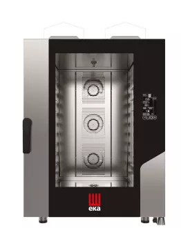 Dveře s dvojitým prosklením jsou opatřeny zámkem otevírání, který chrání obsluhu před nekontrolovaným pohybem. Těsnění dvířek je vyrobeno z odolného silikonu, který si snadno vyměníte sami. Žlábek pod dvířky. LED osvětlení komory. Izolovaný plášť trouby šetří elektrickou energii. Komora i plášť trouby z nerezové oceli. Vyrovnání trouby je možné díky nastavitelným nožičkám. Je nutné připojení k elektřině, upravené vodě a kanalizaci.
