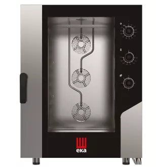 100 °C až 275 °C, 5stupňová regulace zamlžování komory. Dveře s dvojitým prosklením mají otevírací zámek, kterýóje navržen tak, aby chránil obsluhu před nekontrolovaným pohybem. Těsnění dvířek z odolného silikonu, které si snadno vyměníte sami. Žlábek pod dvířky. LED osvětlení komory. Izolovaný plášť trouby šetří elektrickou energii. Komora i plášť trouby z nerezové oceli. Vyrovnání trouby je možné díky nastavitelným nožičkám. Je nutné připojení k elektřině, upravené vodě a kanalizaci.