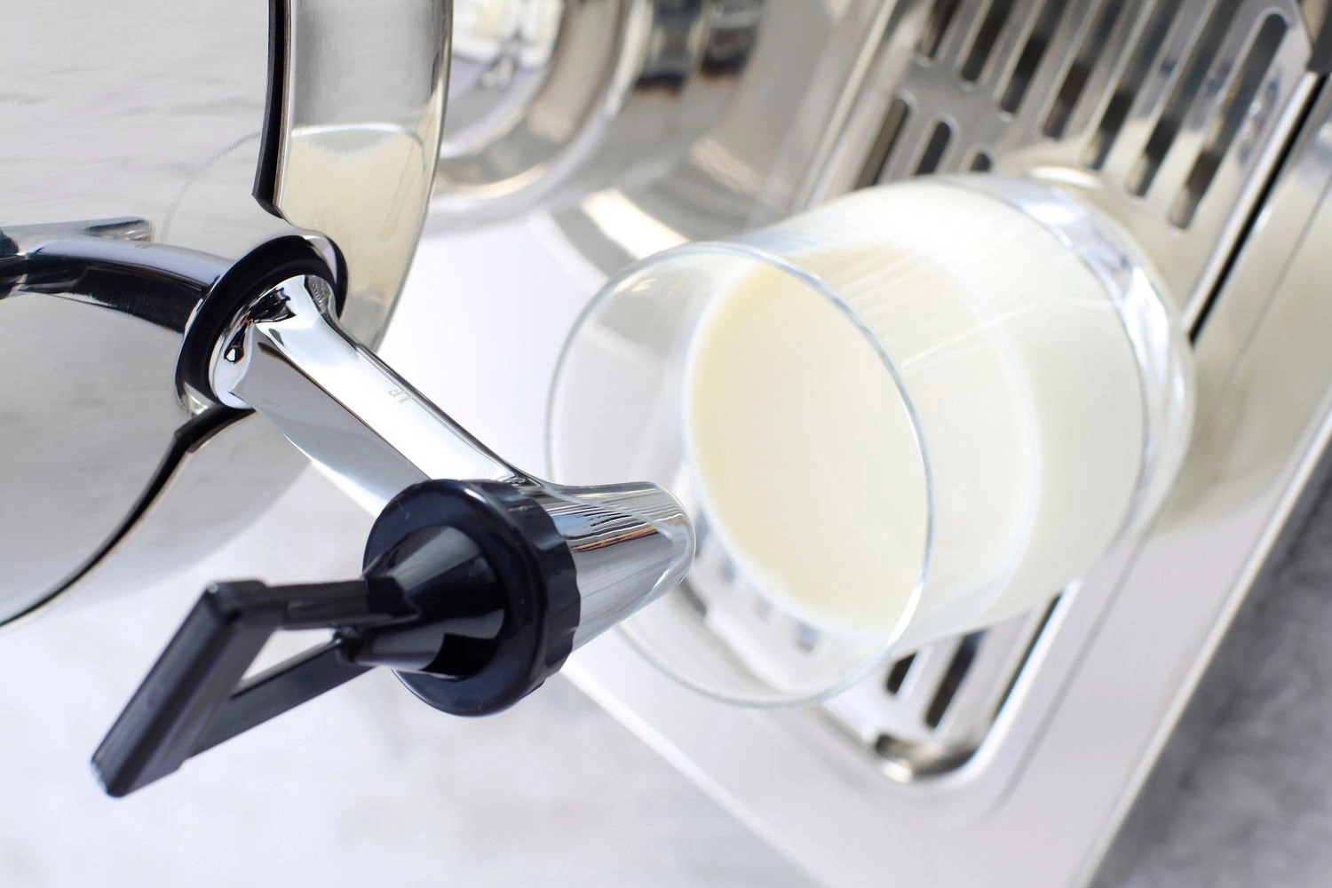 Dávkovač mléka Na podstavci a krytu z vysoce leštěné nerezové oceli. Nádoba na mléko o objemu 10,5 l. Chlazení mléka je možné díky trubičce uvnitř dávkovače, kterou lze naplnit ledem. Baterie bez odkapávání. Odnímatelná odkapávací mřížka pro snadnou údržbu hygieny dávkovače.