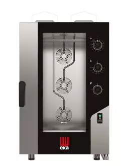 Plynová kombinovaná parní trouba Millenial Smart Gastro. Je určen pro 11 plechů GN 1/1 a má 3 knoflíky, které slouží k: nastavení času od 10 do 120 minut nebo nonstop provoz, nastavení teploty 100 °C až 275 °C, 5stupňová regulace zamlžování komory. Dveře s dvojitým prosklením mají otevírací zámek, kterýóje navržen tak, aby chránil obsluhu před nekontrolovaným pohybem. Těsnění dvířek z odolného silikonu, které si snadno vyměníte sami. Žlábek pod dvířky. LED osvětlení komory. Izolovaný plášť trouby šetří elektrickou energii. Komora i plášť trouby z nerezové oceli. Vyrovnání trouby je možné díky nastavitelným nožičkám. Je nutné připojení k elektřině, upravené vodě a kanalizaci.