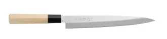 Tradiční japonský nó¿ s dřevěnou rukojetí SASHIMI. Vysoce kvalitní uhlíková ocel X50CrMoV15. Její výroba zajišťuje dokonalou ostrost řezu a maximální odolnost.