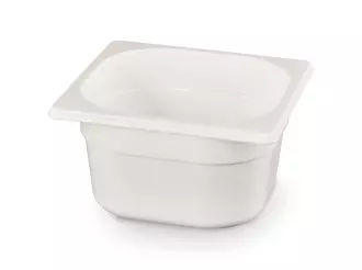 GN 1/6 kontejner Hloubka 15 cm, vyrobeno z bílého polykarbonátu. Nepohlcuje chutě ani pachy. Teplotní odolnost od -40 do +99oC.