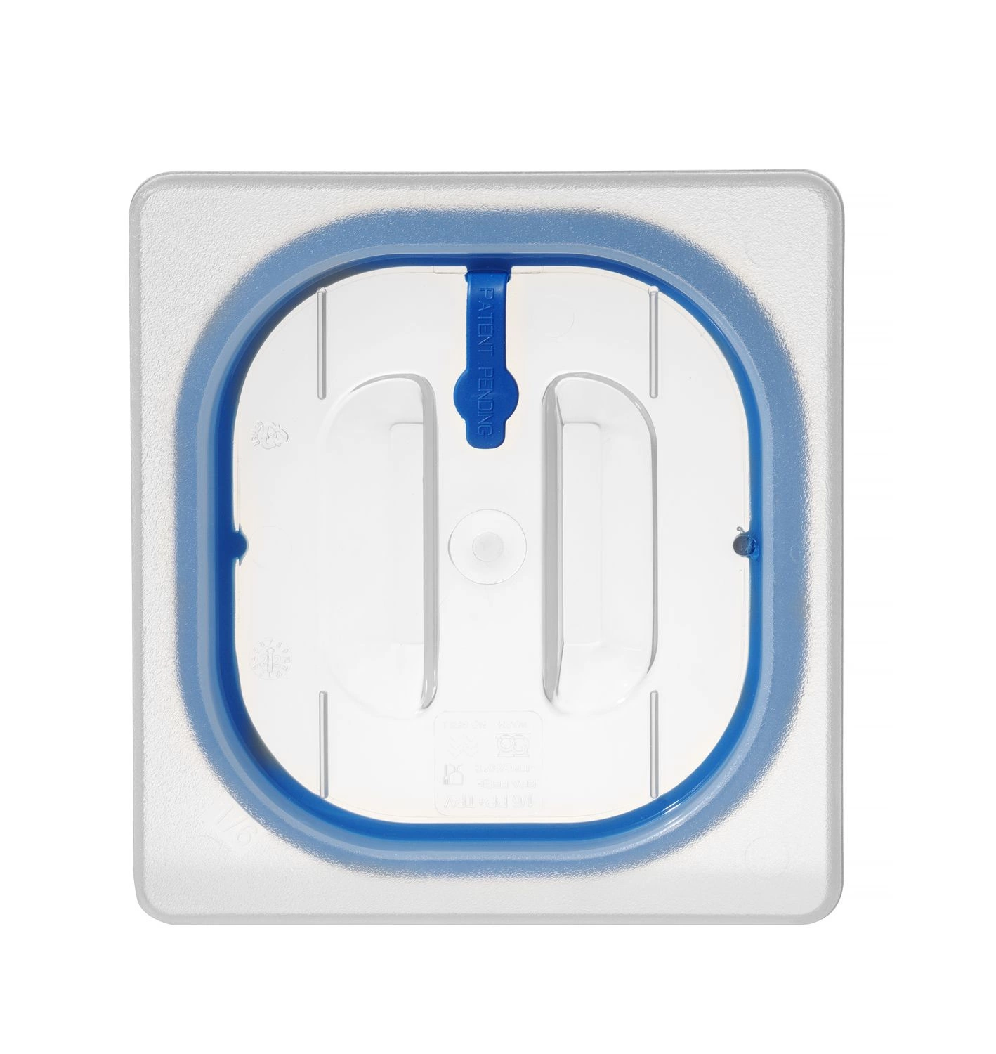 Víko pro nádoby GN 1/6 z bílého polypropylenu. Vzduchotěsné silikonové těsnění zabraňující úniku při přepravě. Okraj pro snadné odvzdušnění a otevření.