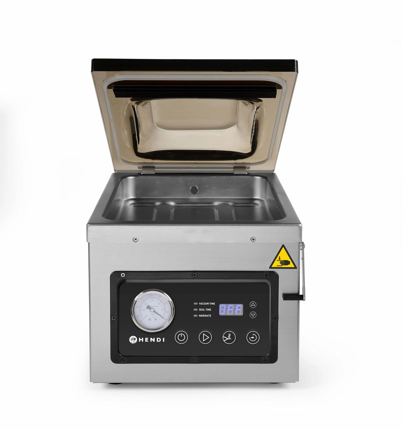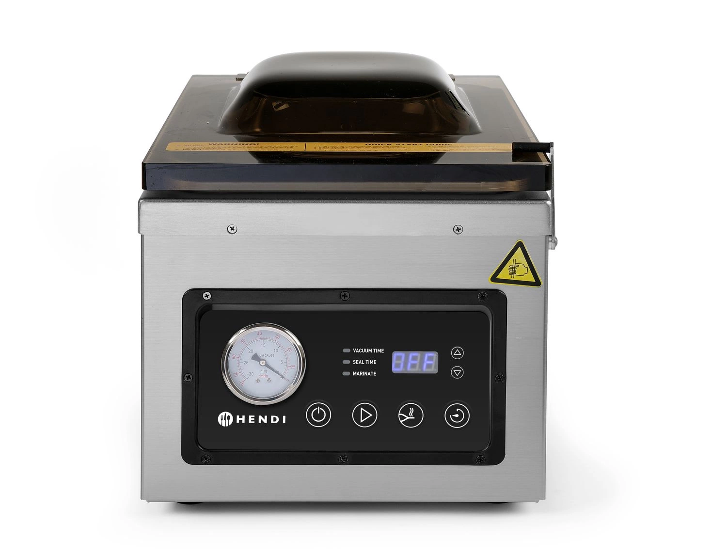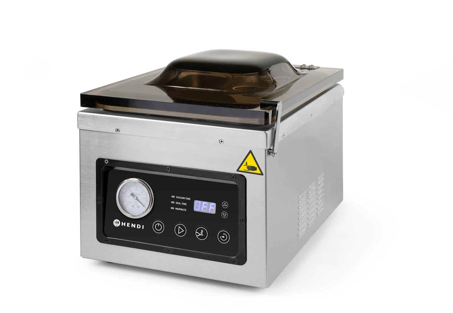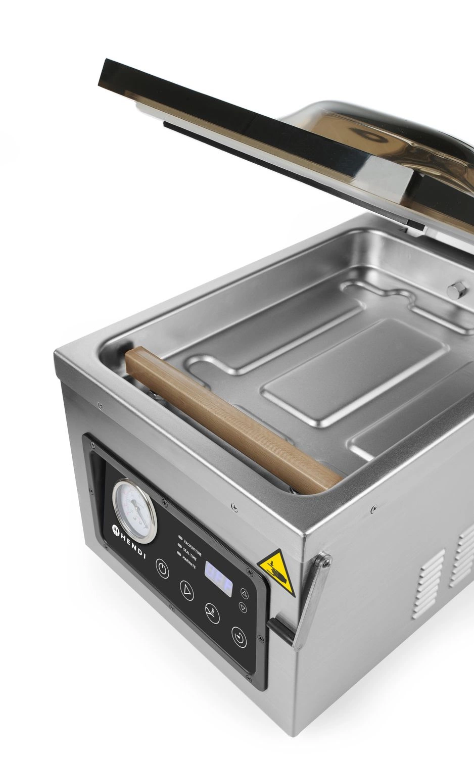 Komorový balicí automat Profi Line 260. Nastavitelná doba generování próžnia a doba utěsnění. Možnost provozu na automatické nebo ruční ovládání. Možnost balení tekutin a potravin s vysokým obsahem vody. Pouzdro a komora z vysoce kvalitní nerezové oceli. Dno s velkou dutinou a vypouklým průhledným víkem umožňuje balení velkých porcí. Digitální displej a analogový tlakoměr.