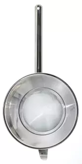 Čínské síto Vyrobeno z vysoce kvalitní nerezové oceli. Drátěná rukojeť a přídavná rukojeť pro snadnější použití. Využití najde jak ve velkých restauracích tak v menších gastronomických zařízeních. Perforovaná.