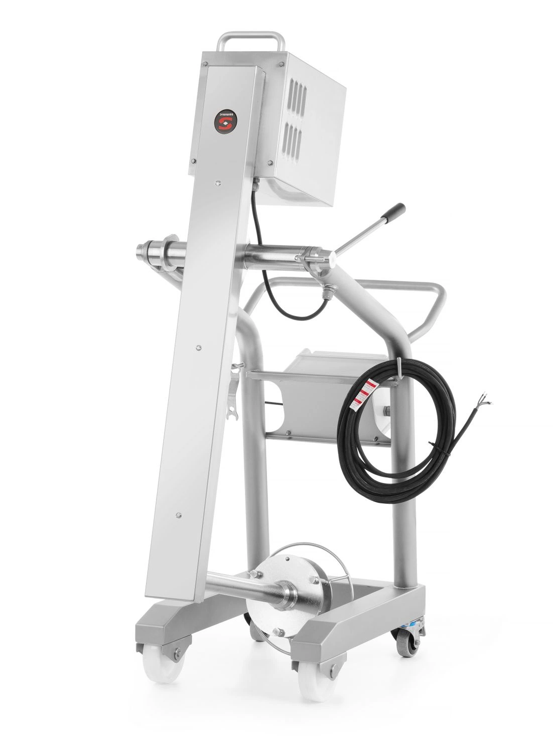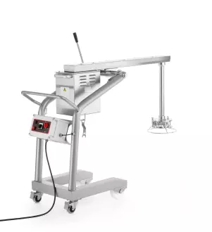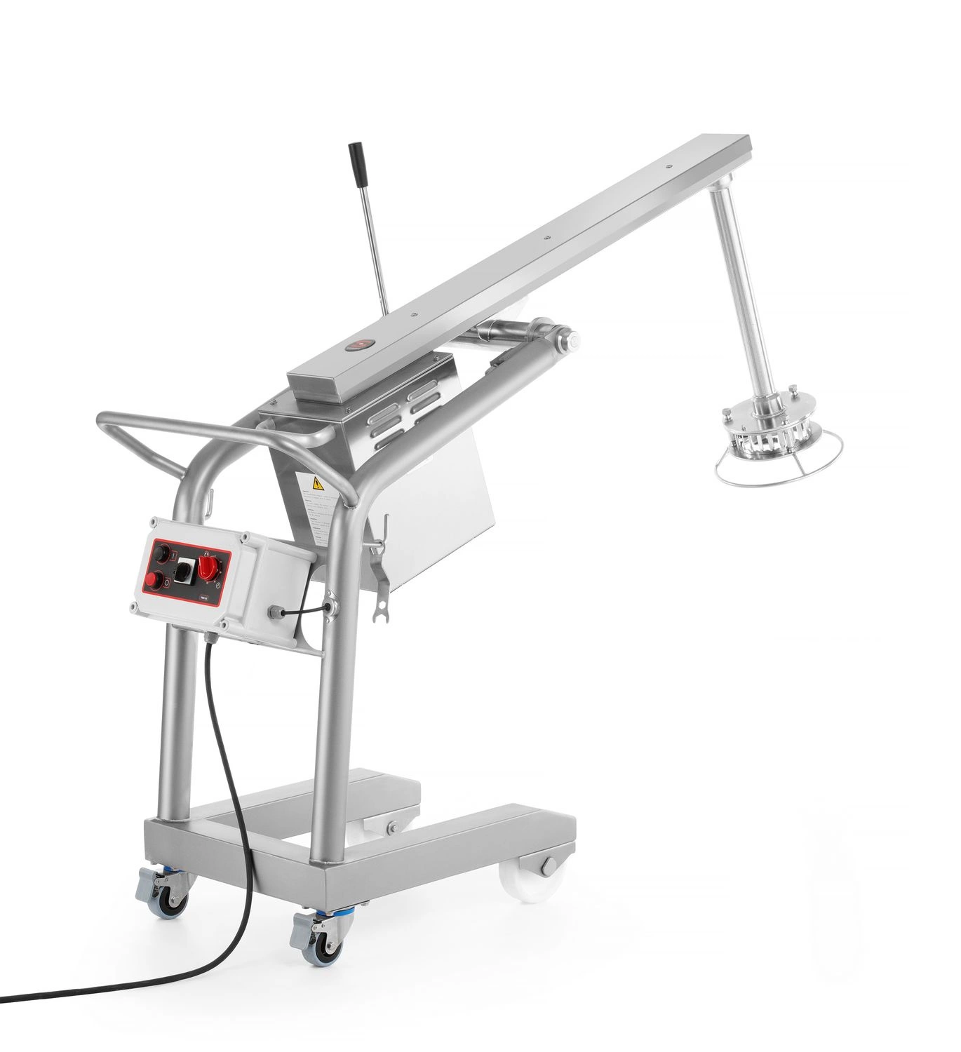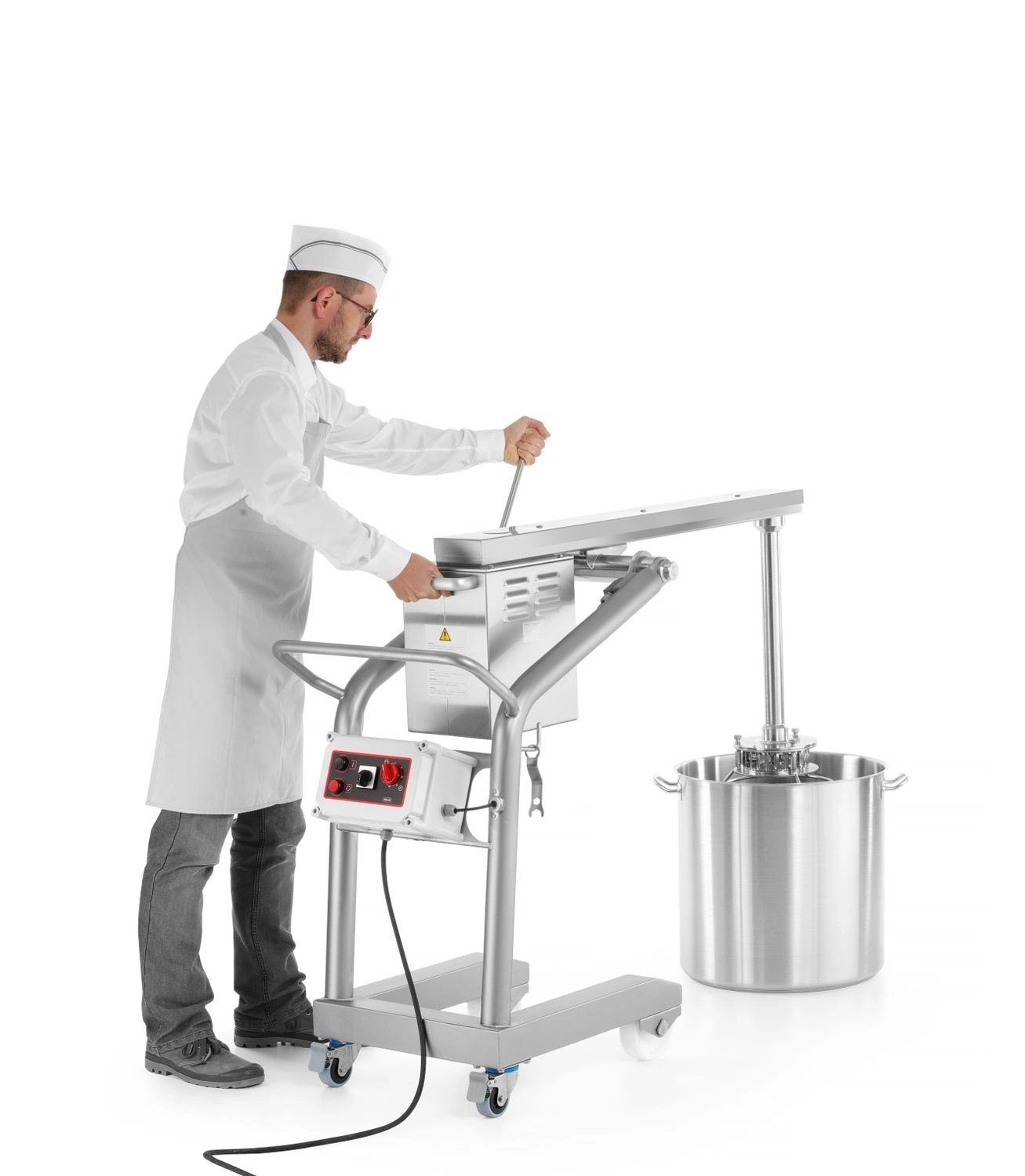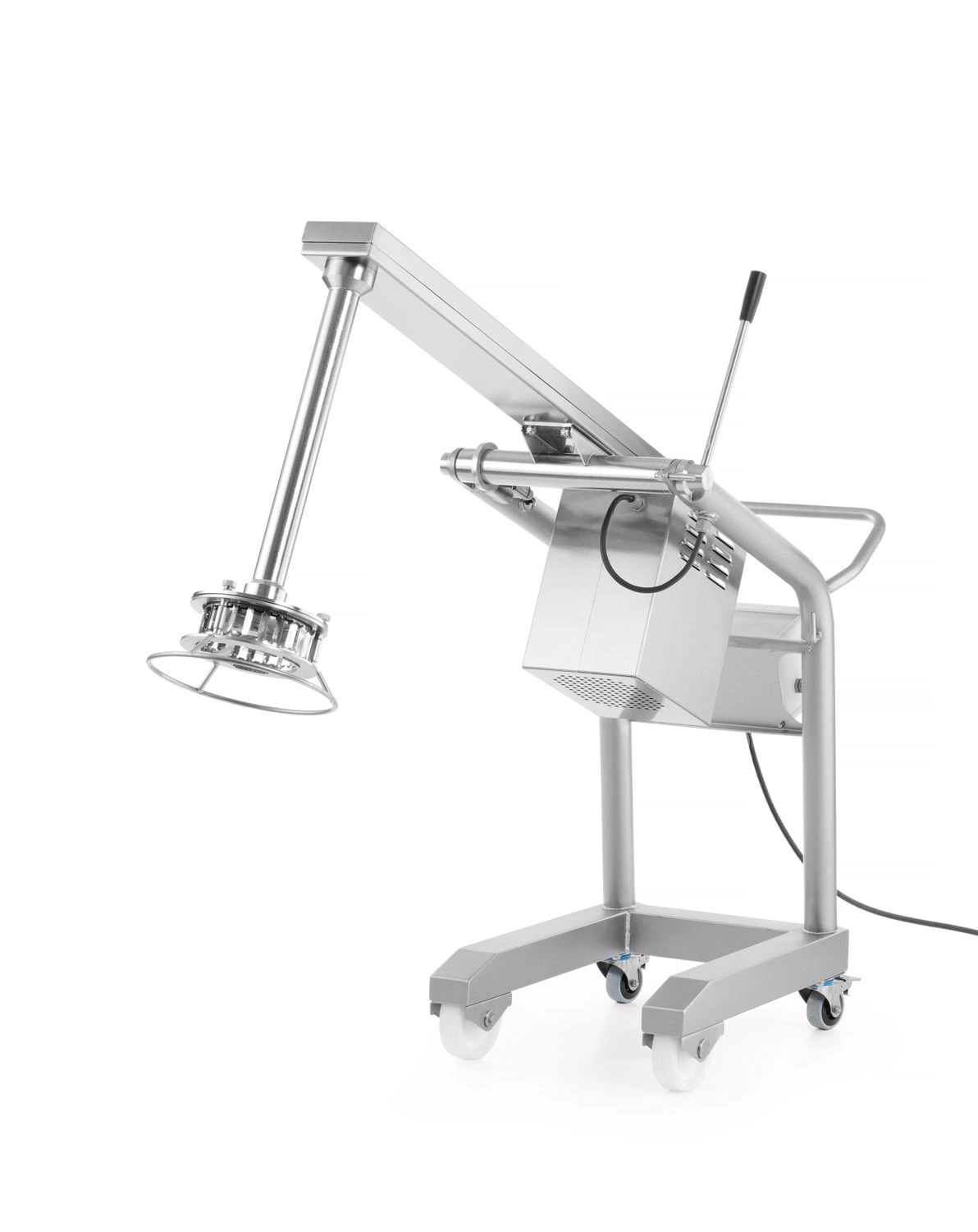 Ideální pro mixování potravin přímo ve vroucích hrncích. 60 cm dlouhé rameno účinně míchá v jakémkoli typu nádoby, kulaté nebo obdélníkové. Je vyrobeno výhradně z nerezové oceli 18/10. Rameno se může pohybovat v různých směrech a je výškově nastavitelné. Je upevněno na wózku se 4 protiskluzovými gumovými nožičkami, z nichž 2 jsou opatřeny brzdami.