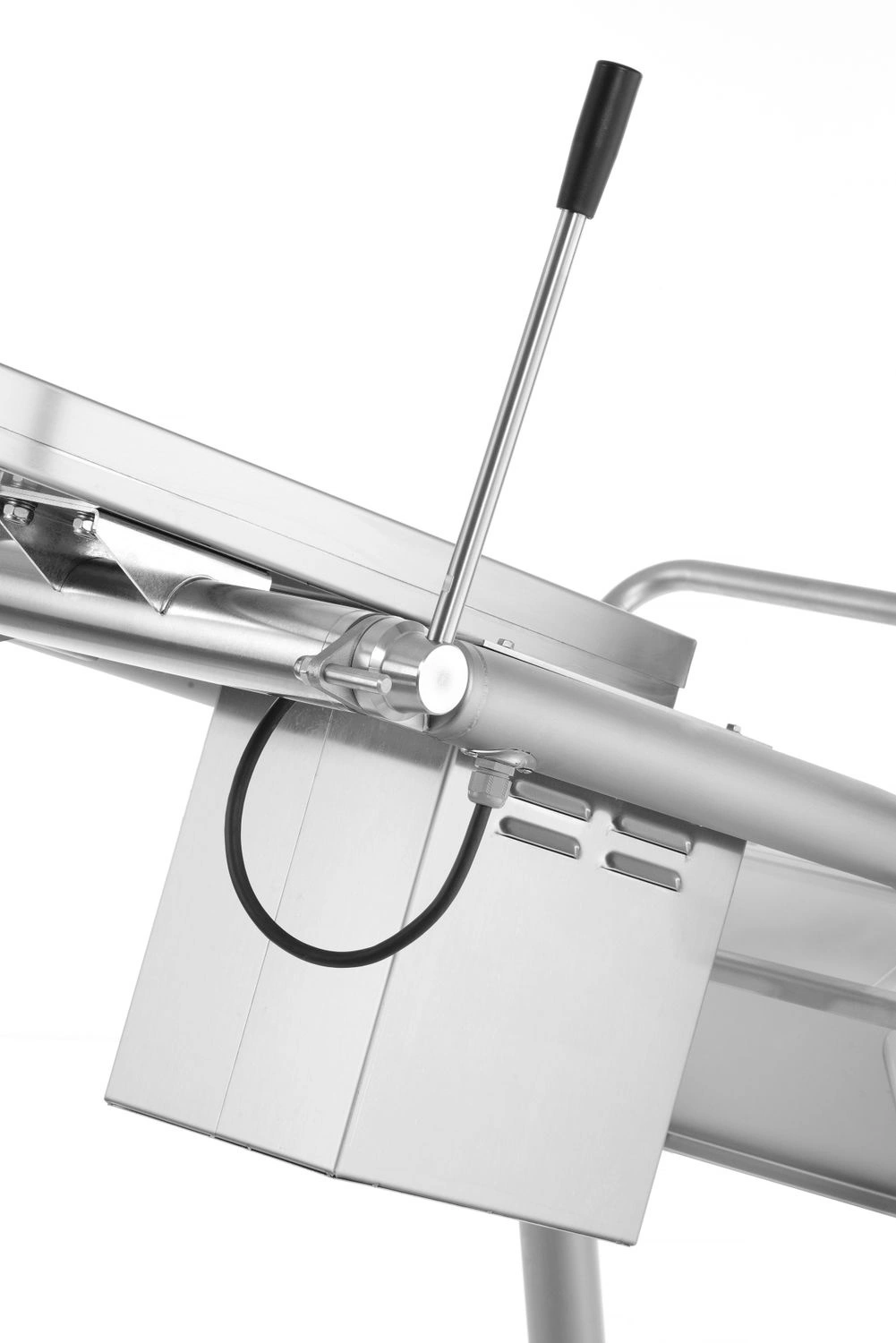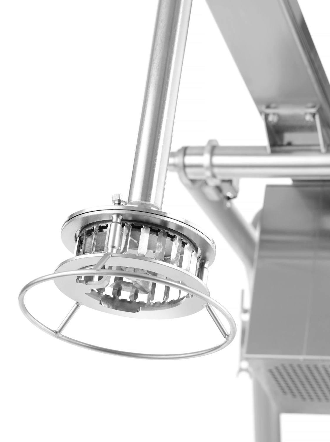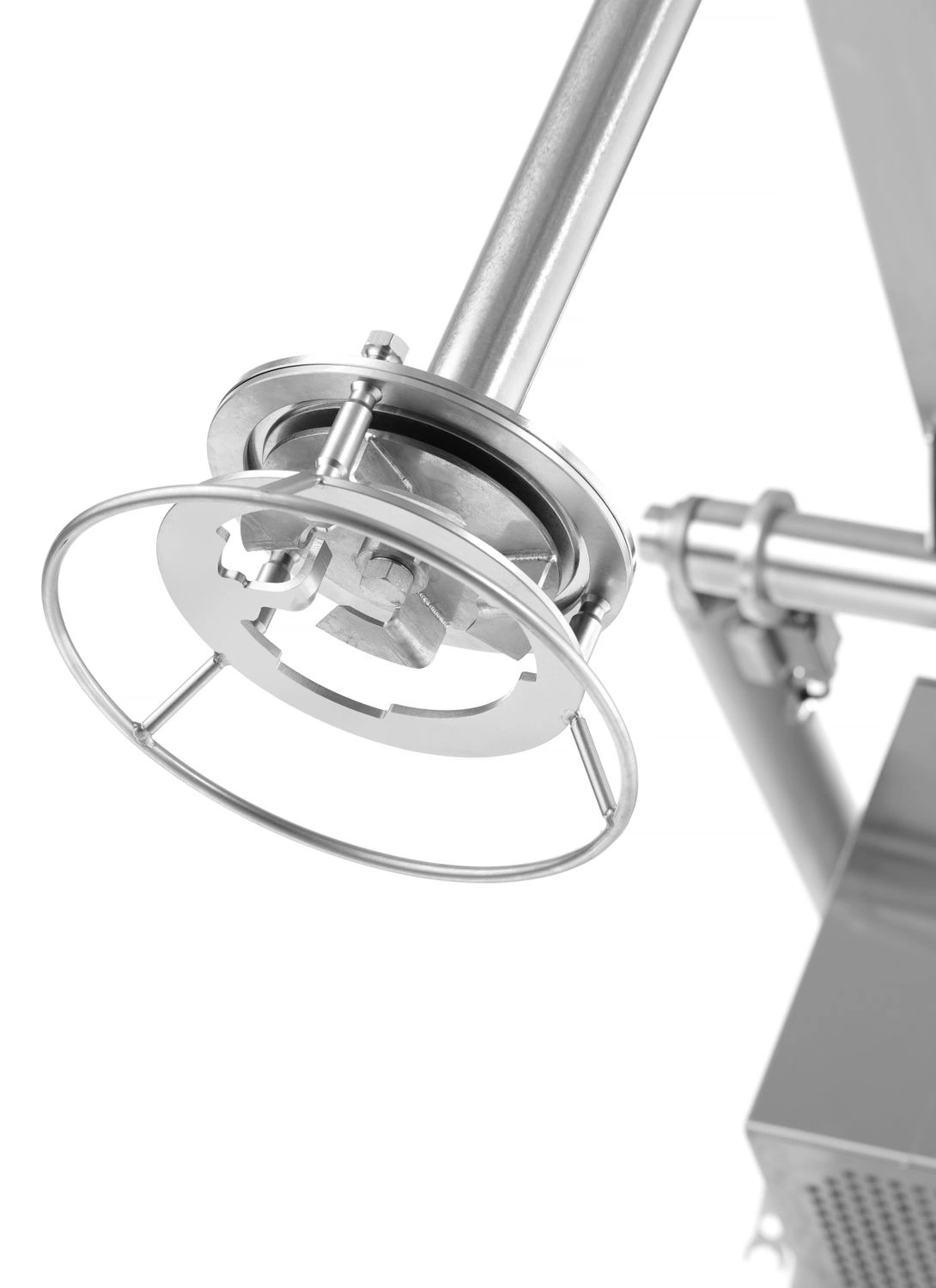 Bezpečnostní mikrospínač kontrolující polohu stroje: nedovolí spuštění turbíny, pokud je rameno příliš vysoko nebo příliš nízko. Pro použití se 3 volitelnými a snadno vyměnitelnými míchacími síty.