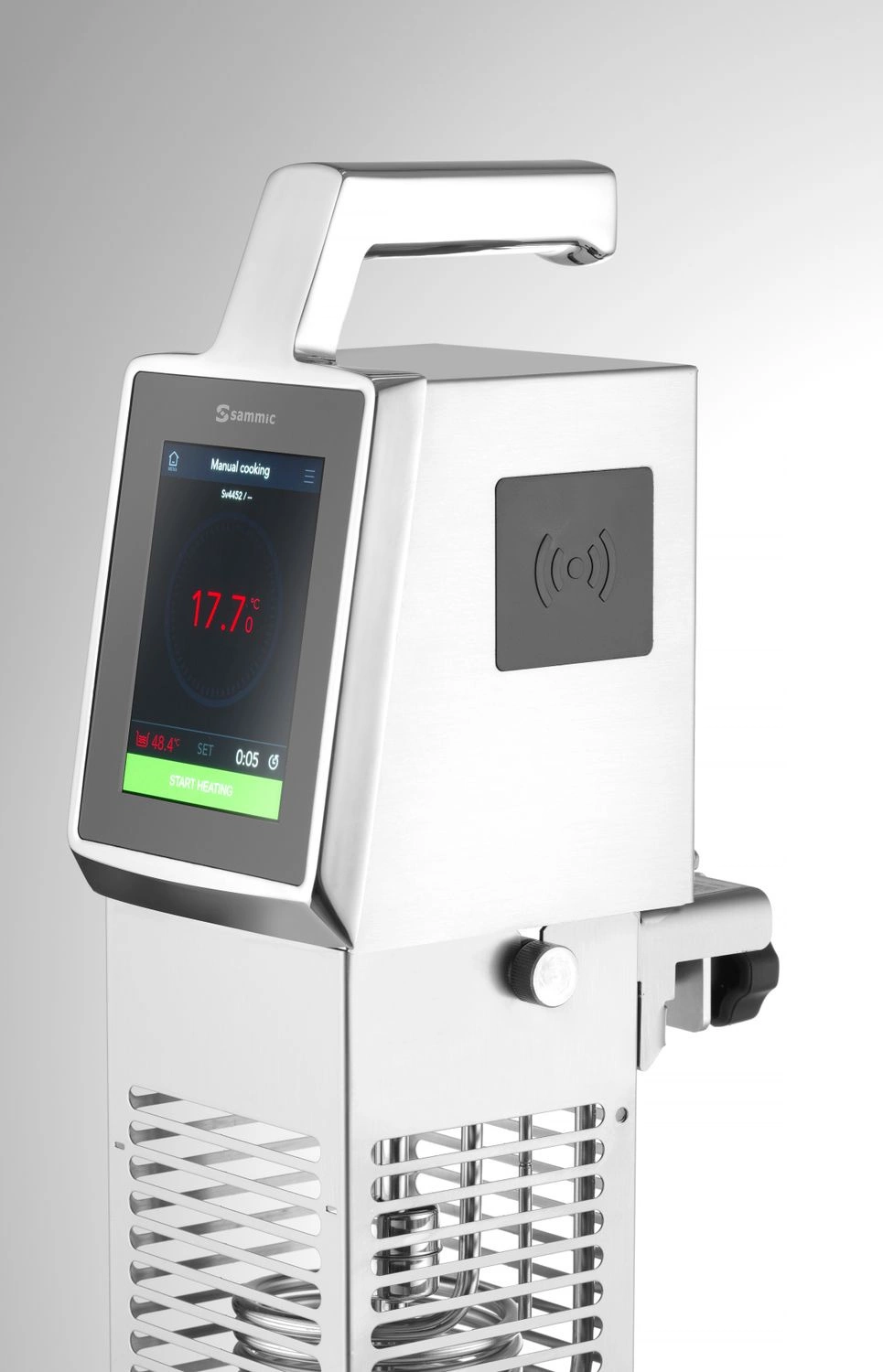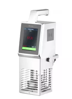 Ponorný cirkulátor SOUS-VIDE pro vaření od společnosti Hendi. Má robustní kryt a rukojeti z nerezové oceli. Umožňuje vařit v sáčku na prádlo, aniž by potraviny přišly do styku s vodou. Má velmi intuitivní ovládací panel. Spotřebič je možné připojit k vyhřívané nádrži, což zkracuje dobu ohřevu Displej je v 5" barvách. Teplotní rozsah od 5 stupňů až 95 stupňů C. Možnost změny jednotek teploty (C,F). Přístroj je možné kalibrovat. Obsluhu usnadňuje ukazatel minimální hladiny vody. Všechny nové modely jsou vybaveny technologií Bluetooth- ta umožňuje ovládat proces vaření nebo vytisknout parametry vaření. Můžete si uložit vlastní programy vaření.