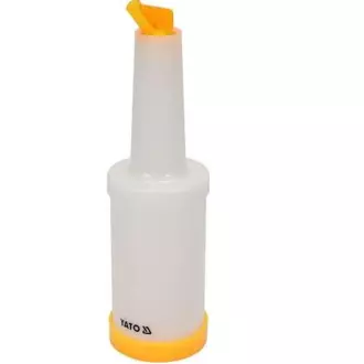 Dvoudílný zásobník na tyčinky vyrobený z polypropylenu. Určeno pro dávkování, míchání a skladování nápojůów. Odolný proti poškození díky vysoce kvalitním surovinám. Barva žlutá. Vestavěný ventilek pro snadné dávkování tekutinów. Šroubovací nádoba, která se uzavírá spodní základnou. Tímto způsobemób můžeme skladovat připravené nápoje.