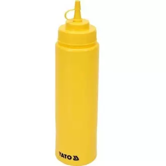 Dávkovač studené omáčky z polyethylenu  ve žluté barvě. . Dávkovač má zátku, která zabraňuje vytečení omáčky a udržuje ji déle čerstvou.