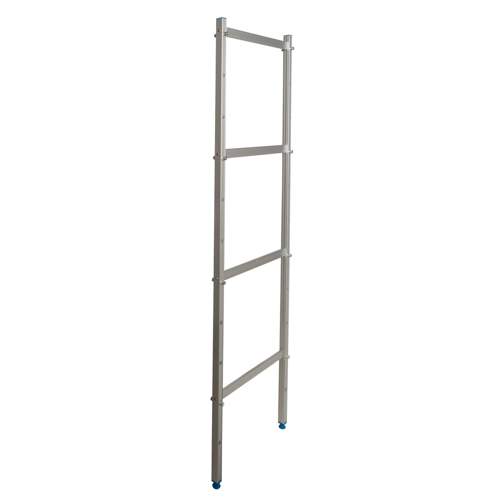Hliníkový/polypropylenový rohový regál se 4 policemi od společnosti Alushelf o rozměrech 64x40x175 cm. Má extrémně lehkou konstrukci, díky které se snadno přemisťuje a přestavuje. Regál lze sestavit bez použití nářadí. Spojovací prvky jsou vyrobeny z vysoce kvalitního eloxovaného hliníku pro vysokou odolnost proti korozi. Police jsou vyrobeny z polypropylenu v modré barvě. Každá police unese zatížení přibližně 100 kg na běžný metr police (při rovnoměrném rozložení zboží). Regály je možné nastavit každých 15 cm. Jsou určeny pro přímý styk s potravinami, což potvrzuje certifikát PZH;
