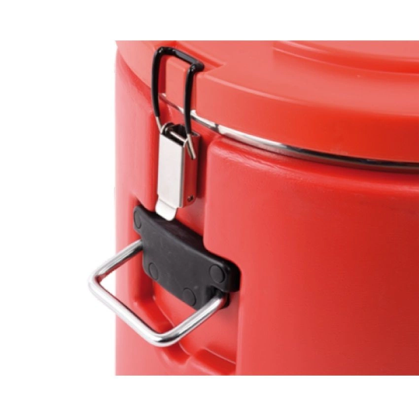 Termos na přepravu potravin značky YATO o objemu 48 l. Korpus nádoby je vyroben z odolného polyetylenu, který je odolný proti poškrábání a promáčknutí, což zajišťuje jeho mimořádnou odolnost proti poškození při intenzivním používání a přepravě. Vnitřní nádrž z vysoce kvalitní nerezové oceli je nejen odolná vůči působení organických kyselin, ale také snadno udržovatelná v čistotě, což zajišťuje trvalou hygienu uchovávaných potravin.