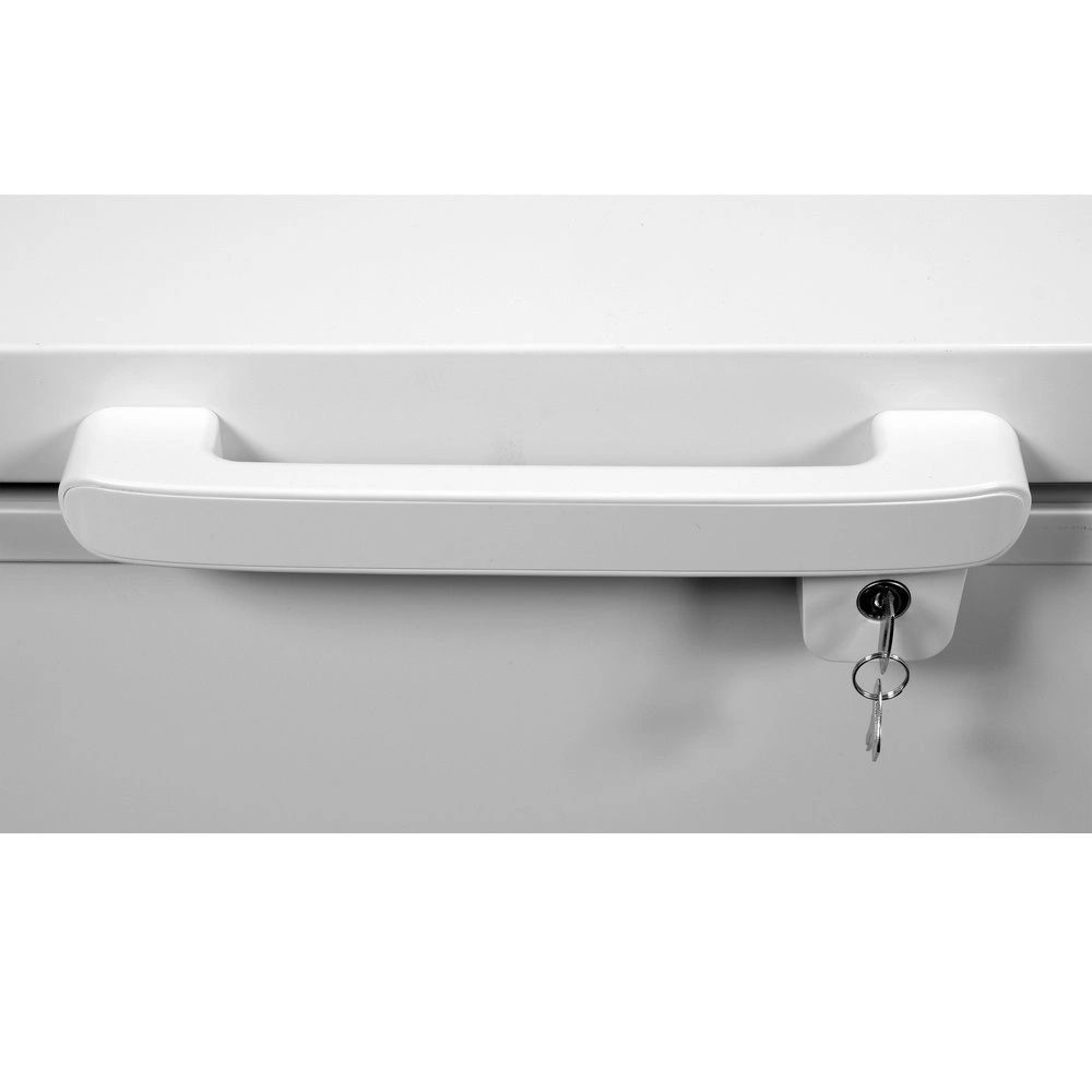 Mraznička YATO s celkovým objemem 435 l. Je určena pro skladování potravin při teplotách od 10 stupňů C do -24 stupňů C. Samouzavírací výklopná dvířka se zámkem zajišťují snadný přístup k obsahu a zároveň udržují stálou teplotu uvnitř, což je nezbytné pro zachování čerstvosti produktů. Zámek zaručuje bezpečnost uložených výrobkůós. Jednotka je vybavena elektronickým ovládáním s digitálním displejem, které umožňuje přesnou kontrolu a přizpůsobení skladovacích podmínek konkrétní potřebě.