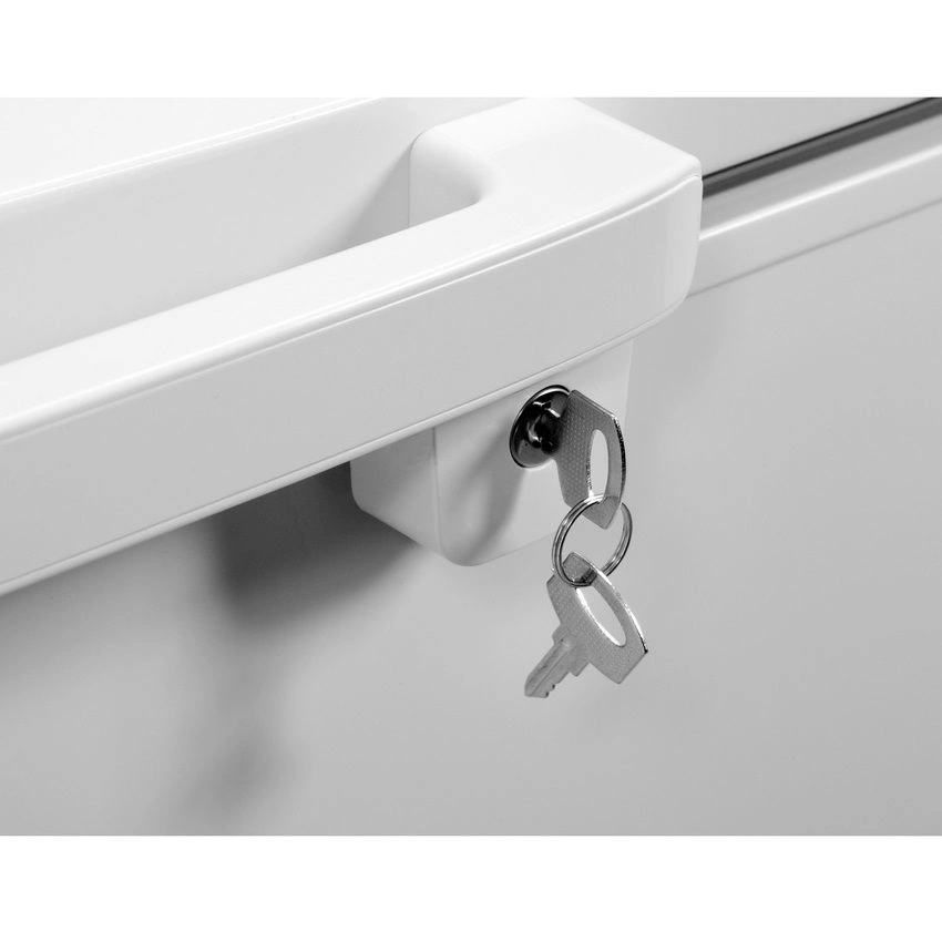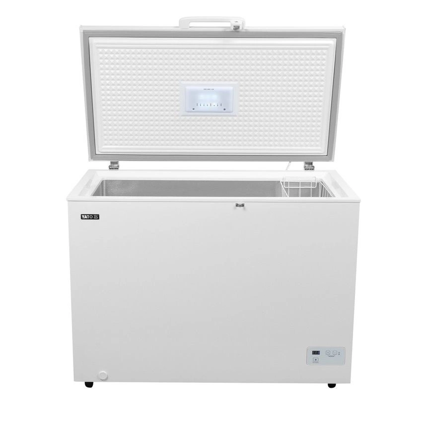 Mraznička YATO s celkovým objemem 282 litrů. Je určena pro skladování potravinářských výrobkůóC při teplotách od 10óC do -24óC. Samozavírací výklopná dvířka se zámkem zajišťují snadný přístup k obsahu a zároveň udržují uvnitř stálou teplotu, což je klíčové pro zachování čerstvosti výrobkůóC. Zámek zaručuje bezpečnost uložených výrobkůós. Přístroj je vybaven elektronickým ovládáním s digitálním displejem, které umožňuje přesnou kontrolu a nastavení skladovacích podmínek podle konkrétní potřeby.