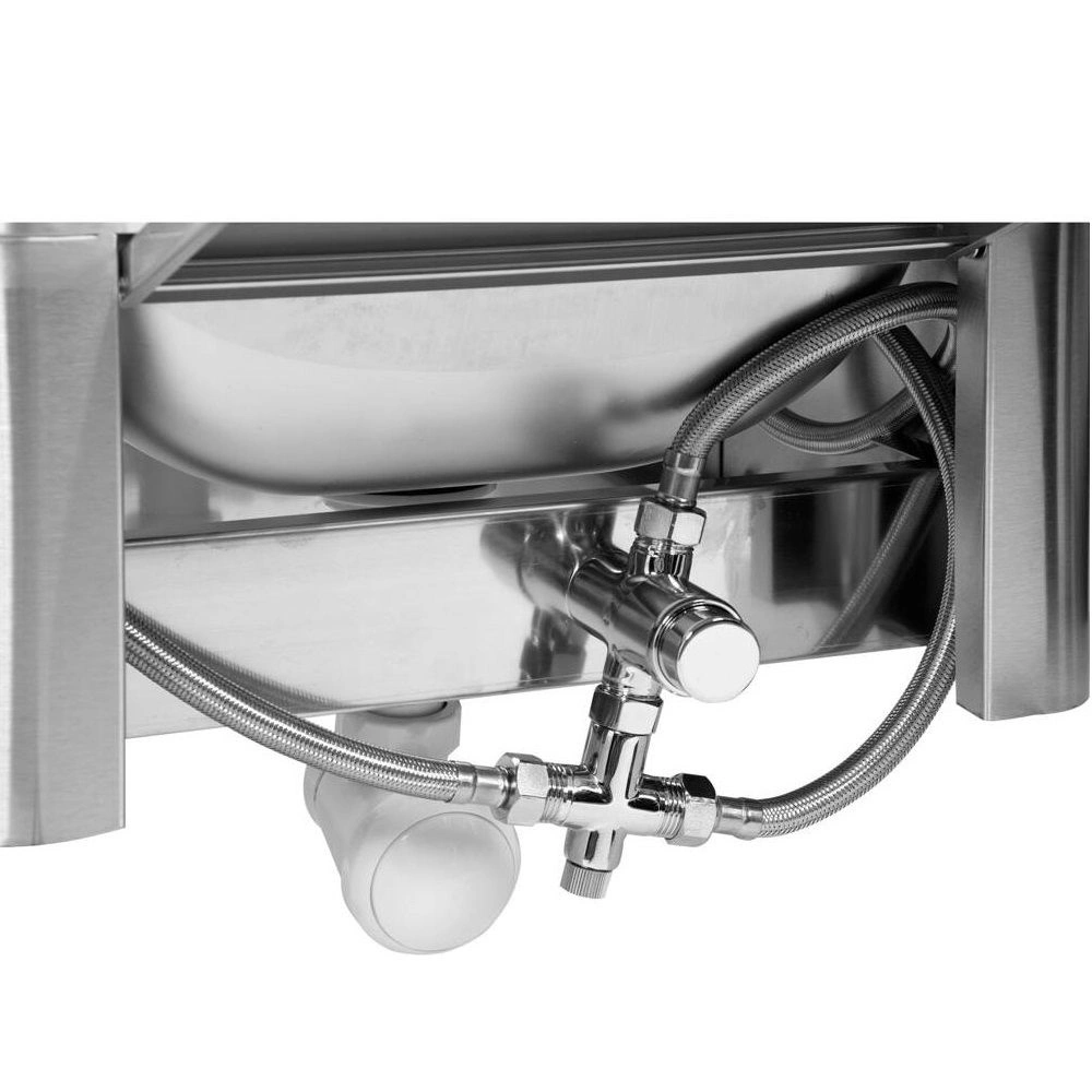 Kolenní umyvadlo od YATO z nerezové oceli 304/201 s rozměry přihrádky 33x23,5x12,5 cm. Kolenový ventil s časovým otevíráním a regulací teploty je moderní a funkční řešení, které v sobě spojuje pohodlí při používání, úsporu vody a snadnou instalaci. Díky možnosti nastavení doby otevření ventilór automaticky uzavře přívod vody po uplynutí stanovené doby. Jedná se o ideální řešení pro místa, kde je kontrola spotřeby vody klíčová.