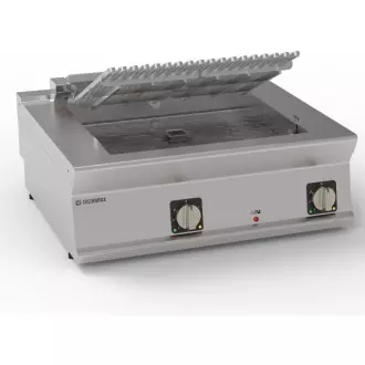 Grilovací plocha o rozměrech 54,5x44,7 cmVodní gril nabízí dostatek pracovního prostoru a jeho rozdělení na 2 zóny umožňuje připravovat různé potraviny při různých teplotách, čímž se zvyšuje účinnost procesu přípravy. Výhodou vodního grilu je jeho schopnost udržovat potraviny vlhké, což zabraňuje jejich vysušování a zároveň zaručuje šťavnatost a plnou chuť. Elektrický systém navíc eliminuje potřebu otevřeného ohně, takže je bezpečnější a snadněji se čistí. Díky kvalitním materiálům a promyšlenému designu je gril nejen spolehlivý, ale také odolný, a to i v těch nejvytíženějších kuchyních. Pohodlný upevňovací systém Tecnoinox usnadňuje instalaci a montáž jednotky. Nohy jsou snadno nastavitelné (1,5-2,5 cm) a je vyroben z nerezové oceli AISI 304, jednotka je navržena tak, aby se ohřívala přímo na topném tělese, chráněném ocelovou trubkou. Má výklopná topná tělesa pro snadné čištění a nádržku s automatickým plněním vodou pro zachycení tuku. Kromě toho má termostat s automatickým resetem a bezpečnostní funkci pro případ prázdné nádrže.