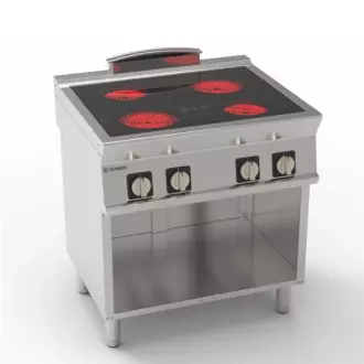 Sklokeramický elektrický sporák se 4 hořáky a celkovým výkonem 8,6 kW od společnosti Tecnoinox Řada Tecno74 je kombinací modernosti a spolehlivosti a je určena pro střední a velké restaurace a hotely. Byla vytvořena s ohledem na nejvyšší standardy kvality a nabízí nejen výjimečný výkon, ale dbá i na detaily, které usnadňují každodenní práci v kuchyni. Vyrobeno z nerezové oceli nejvyšší třídy AISI 304 Tloušťka 1,5 mm zaručuje odolnost a snadné čištění díky lisovaným pracovním deskám se zaoblenými rohy a nádržkám se širokými drážkami. Ventilační otvory lze snadno vyjmout a samotná kuchyňská linka dokonale ladí s ostatními spotřebiči, což zajišťuje vysokou úroveň hygieny.