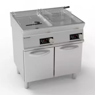 Elektrická dvoukomorová fritéza s objemem 2x17 litrů na uzavřeném podstavci. Spotřebič značka TecnoinoxŘada  Tecno74 je kombinací modernosti a spolehlivosti a je určena pro střední a velké restaurace a hotely. Byla vytvořena s ohledem na nejvyšší standardy kvality a nabízí nejen výjimečný výkon, ale stará se i o detaily, které usnadňují každodenní práci v kuchyni;Vyrobeno z nerezové oceli nejvyšší třídy AISI 304 s tloušťkou 1,5 mm zaručuje neuvěřitelnou odolnost. Vysoce kvalitní materiály, pečlivý design a leštěné povrchové úpravy činí jednotky a kompozice Tecno74 robustními a praktickými. Řada Tecno74 byla navržena pro snadnou instalaci a čištění.