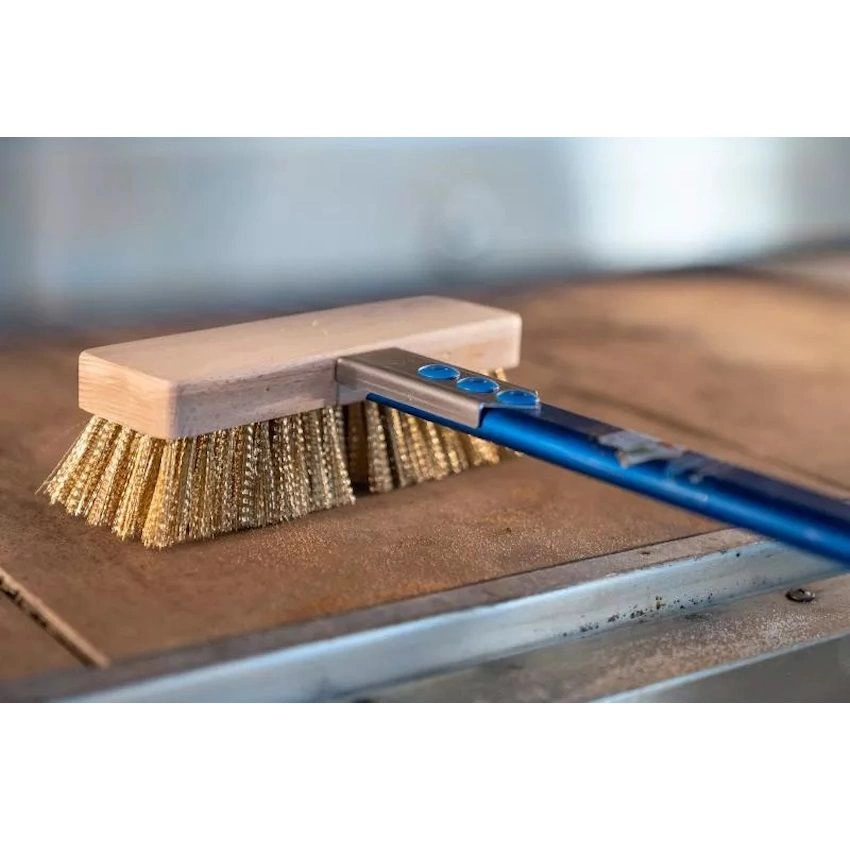 - Mosazné štětiny – Štětiny z mosazi umožňují účinné odstranění i silného znečištění, aniž by poškrábaly povrch šamotového kamene. Mosaz je odolná vůči vysokým teplotám a nevykazuje rychlé opotřebení.