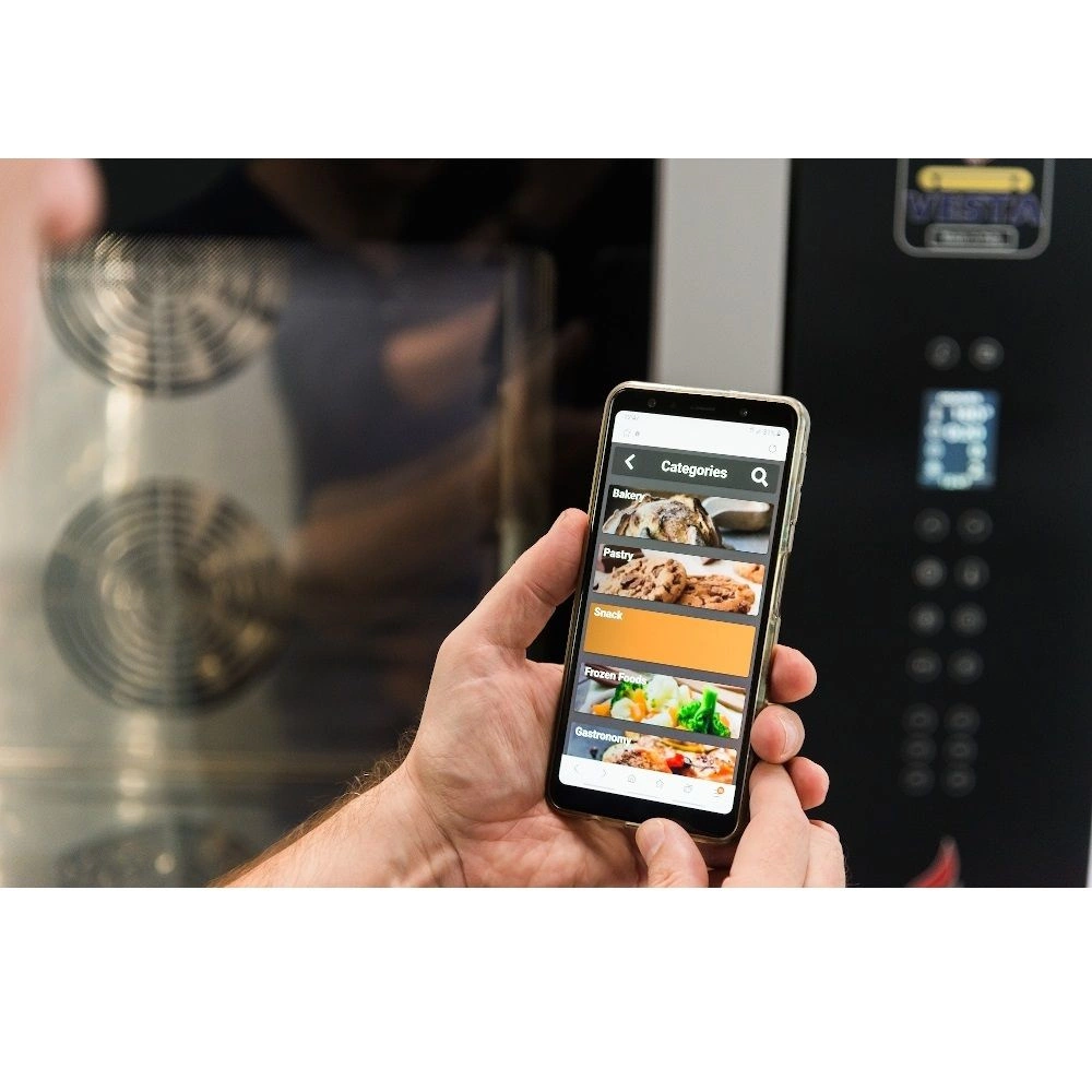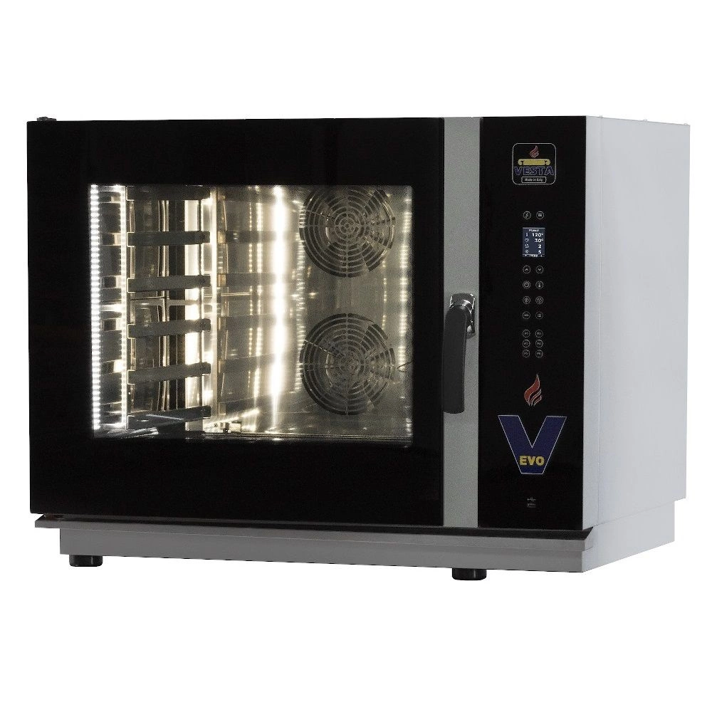 Elektrický konvektomat od společnosti Vesta s výrobou páry ve spreji. Je ideální pro profesionální gastronomické kuchyně, kde je důležitá kvalita, opakovatelnost a přesnost přípravy pokrmů. Trouba pojme až 7 plechů GN 1/1 nebo 7 plechů 60x40 cm. Zařízení je vybaveno elektronickým ovládáním a 2,4palcovým displejem s pixely. Trouba nabízí možnost konvekčního pečení, konvekčního pečení s variabilní párou, pečení v páře a smažení. Komora je vybavena jednobodovou deltaT sondou pro přesnou kontrolu procesu pečení. Trouba umožňuje současné pečení na více úrovních, což umožňuje zvýšit efektivitu kuchyně při zachování kvality potravin. Spotřebič je vybaven kuchařkou s možností uložení až 99 receptůóve 3 krocích a možností předehřevu. Kromě toho je trouba EVO vybavena automatickým dvoustupňovým systémem čištění + oplachování. Spotřebič má také systém rychlého ochlazení po použití a funkci rychlého startu pro 6 předprogramovaných receptůów.