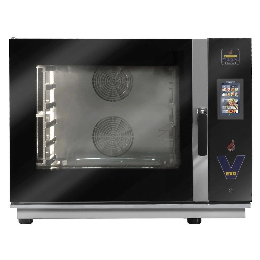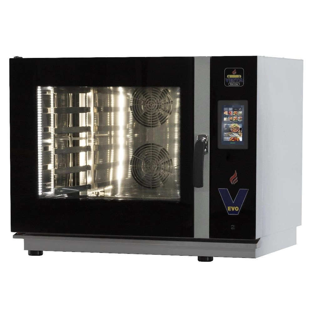 Konvektomat elektrický, nástřik - přímá pára, varná komora z nerezové oceli AISI 304 se zaoblenými rohy, vnější provedení z nerezové oceli AISI 304, dvojité větrané sklo dveří, dvojitý zámek dveří, vnitřní halogenové světlo. ...