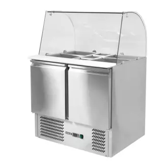 Chladicí dvoudveřový salátový stůl se skleněným nástavcem