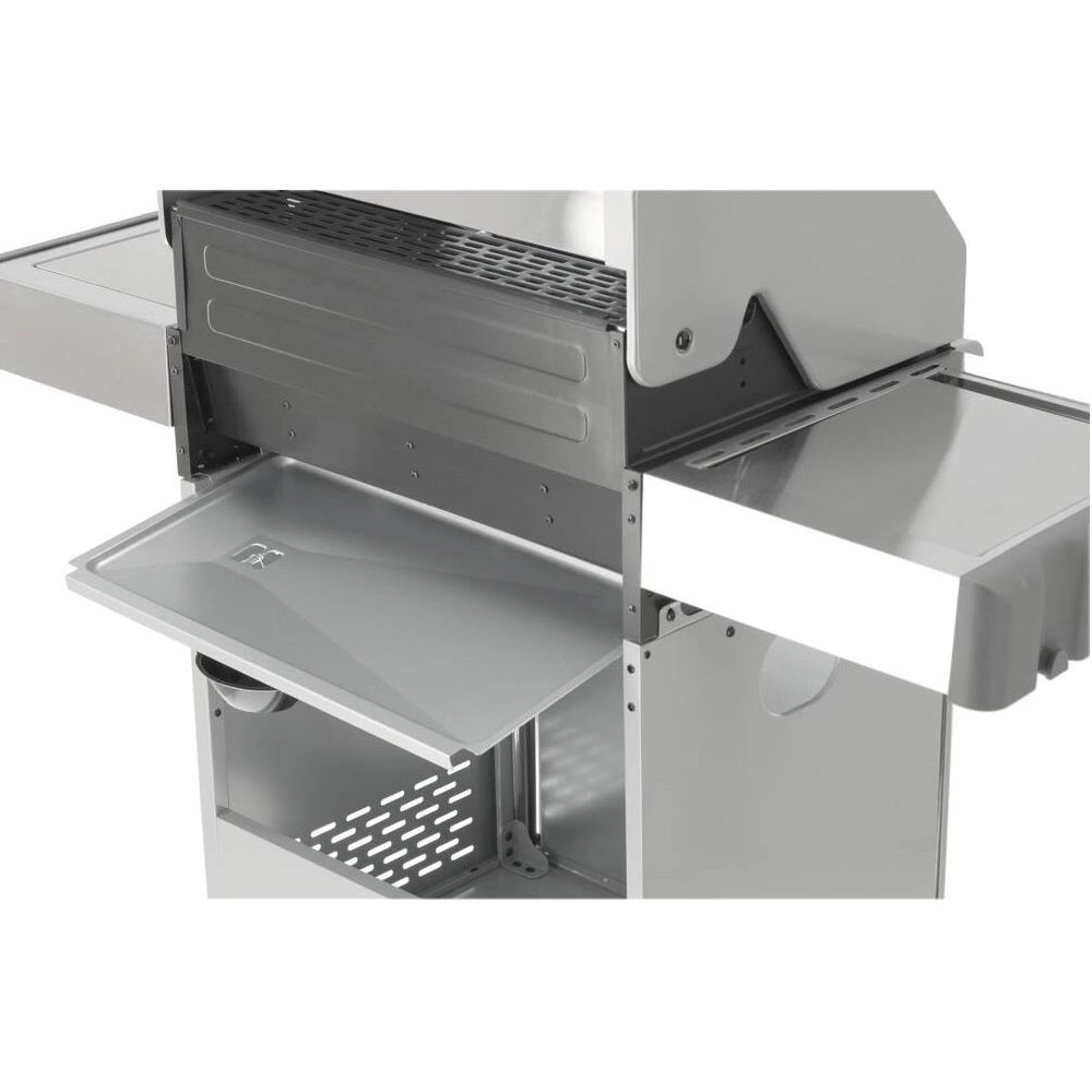 Sada 3+1 zahrnuje 3 hlavní nerezové hořáky o výkonu 3 kW každý a 1 boční hořák o výkonu 2,2 kW, což umožňuje vaření a ohřívání pokrmů v hrnci nebo na pánvi. Celkový výkon činí 11,2 kW při průměrné spotřebě plynu 814 g/h. Průměr trysky 3x0,8 + 1x0,66 mm. Praktické grilování podtrhují boční police, prostorná skříňka, kryt hořáku (aromatizér), ocelová mísa odolná vůči vysokým teplotám a otočná 4 kolečka s brzdou pro snadný transport. Další výhody: 6 háčků na bočních policích, 4 ovládací knoflíky s modrým LED osvětlením signalizující zapnuté hořáky, otvírák na lahve na boku grilu a možnost vysunutí odkapávací desky a její umytí mimo gril.