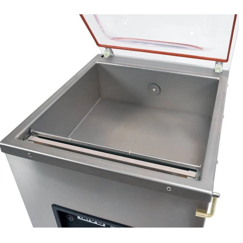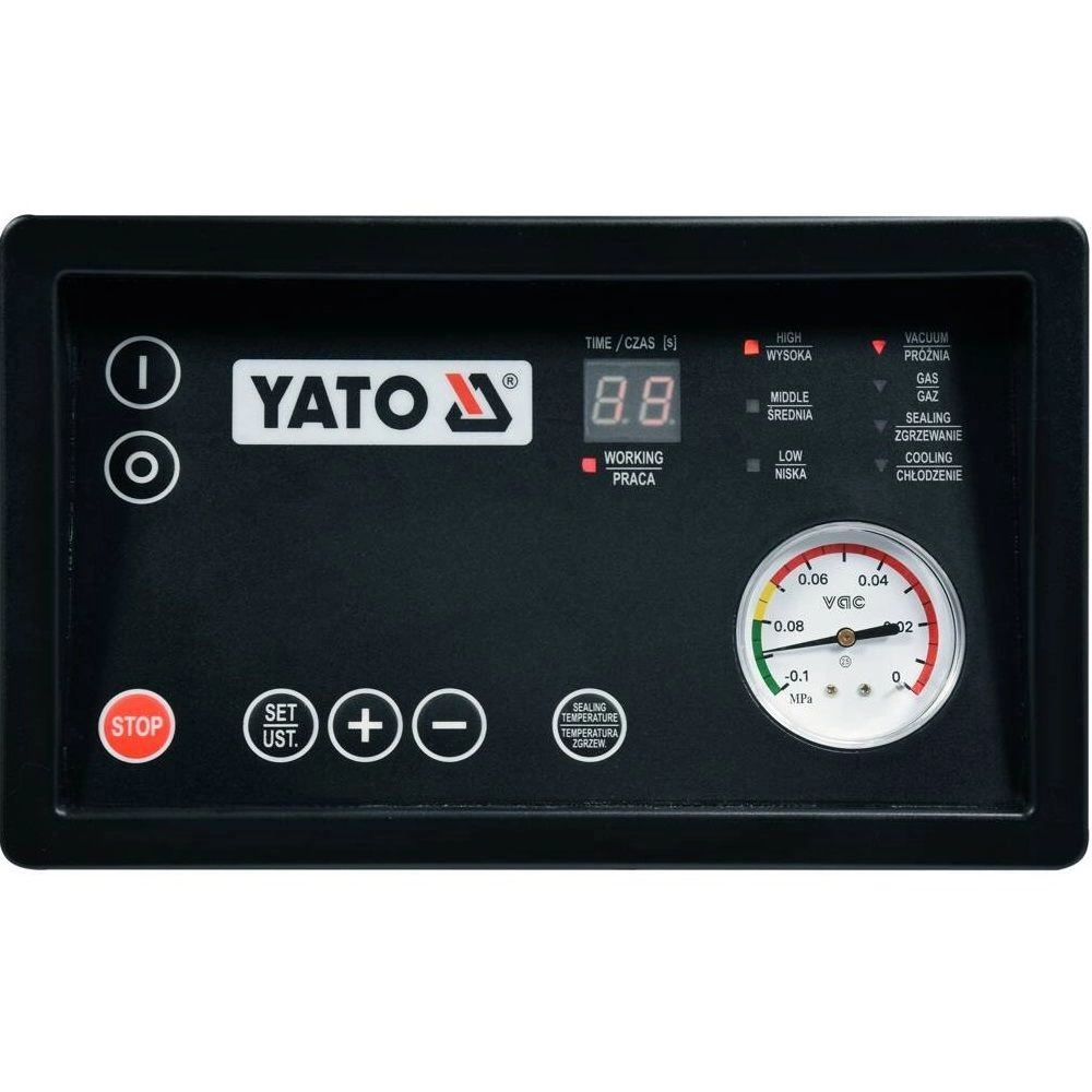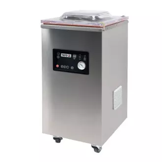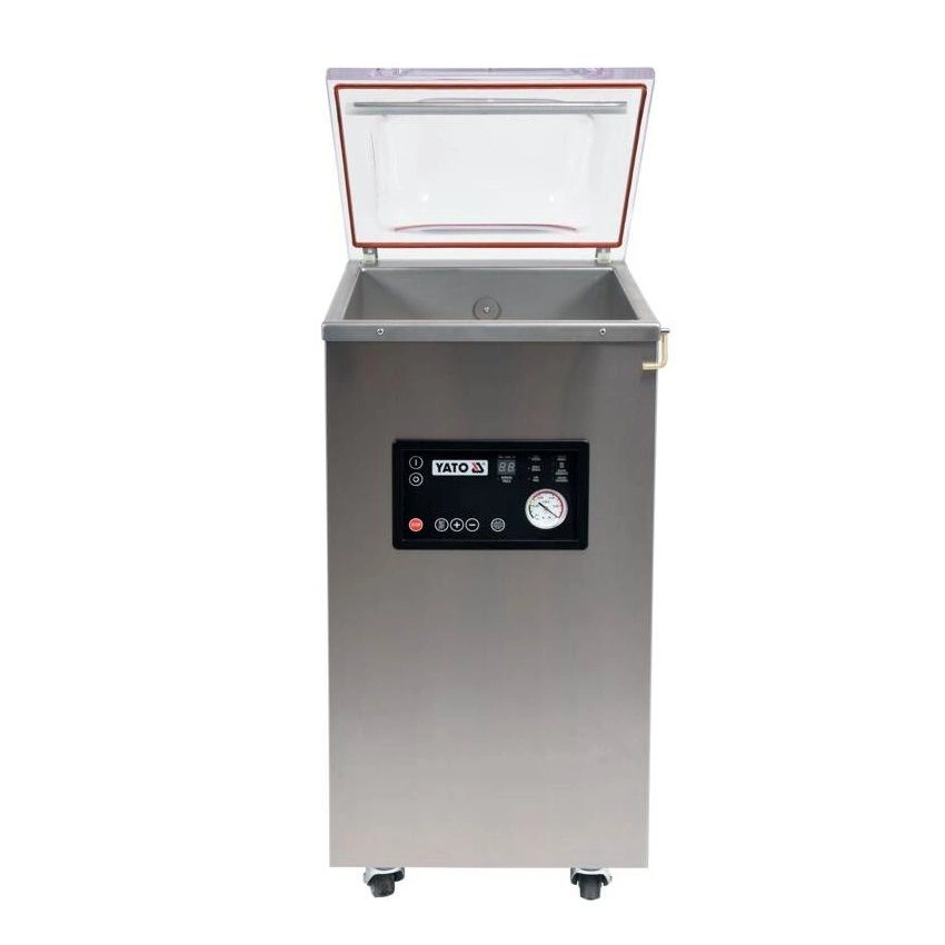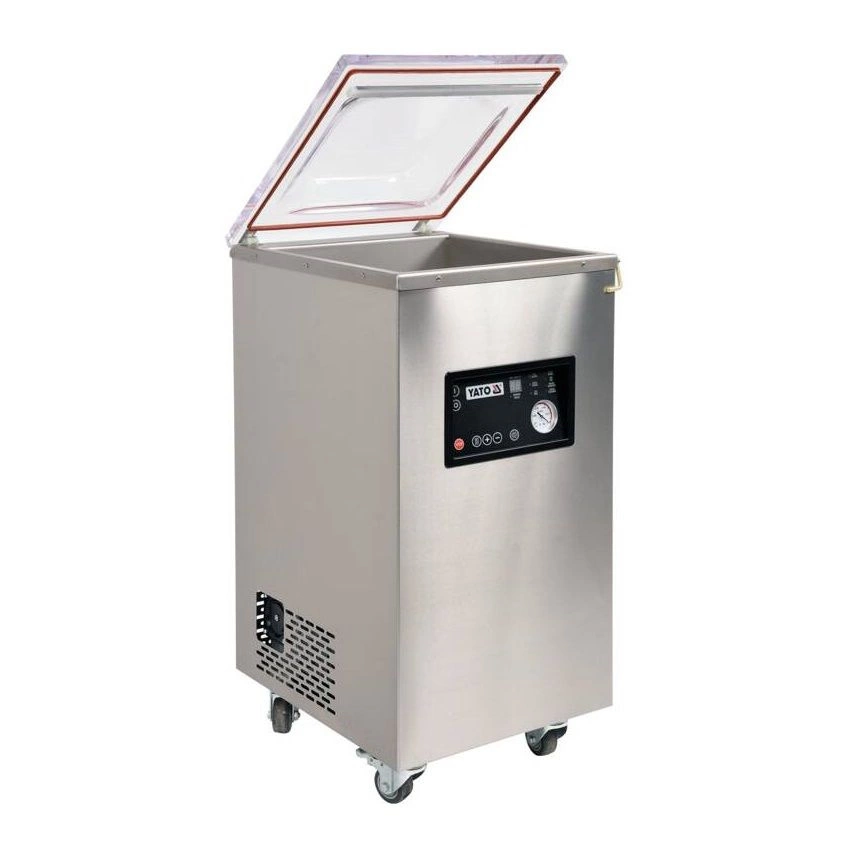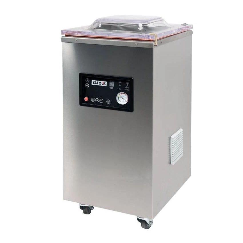 Mobilní jednokomorový mobilní balicí stroj YATO s šířkou těsnění 40 cm a vnější rozměry 55,5x47,5x107 cm. Kapacita jednotky je 230 l. Umožňuje balit potraviny v předbalených obalech, které účinně odolávají oxidačním a dezintegračním procesům a zaručují delší čerstvost. Konzervované výrobky lze dlouhodobě skladovat v chladničce s mrazničkou, čímž se minimalizuje množství odpadu a odpadá nutnost likvidace nespotřebovaných výrobkůóly. Primární obal je ideální pro marinování potravin, protože tím, že je potravina zbavena přístupu vzduchu, je proces marinování účinnější a chuť potravin intenzivnější. Přístroj je ideální pro přípravu sous vide, marinování potravin, skladování sezónního ovoceózeleniny a masa, chlazení a zmrazování nepoužitých výrobkůów.