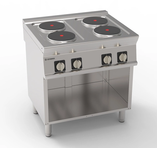 Elektrický vařič Tecnoinox se 4 hořáky a otevřeným podstavcem řady Tecno74 představuje kombinaci modernosti a spolehlivosti, určenou pro střední a velké restaurace a hotely. Byla vytvořena s ohledem na nejvyšší standardy kvality a nabízí nejen výjimečný výkon, ale dbá i na detaily, které usnadňují každodenní práci v kuchyni.