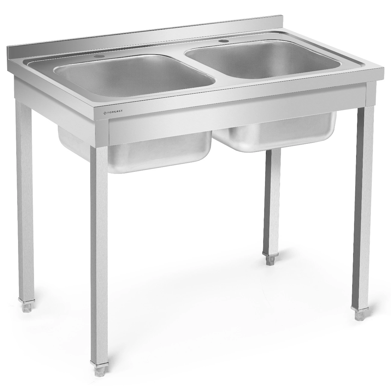 Nerezový stůl s dvoukomorovým dřezem 100x60x85 šroubovaný FORGAST FG15335 je profesionální gastronomický nábytek, který kombinuje funkci pracovní plochy a dvoukomorového dřezu. Vyniká pevnou konstrukcí z nerezové oceli, praktickým dřezem se dvěma komorami a absencí spodní police, což usnadňuje udržování čistoty a přístup k prostoru pod pracovní deskou. Skvěle se hodí do restauračních kuchyní, jídelen, gastronomických provozů nebo potravinářských závodů, kde je důležitá efektivita práce a vysoký hygienický standard.