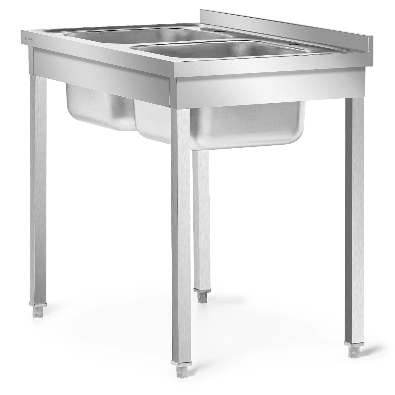 Tento model nerezového stolu je ideální pro intenzivně využívané gastronomické kuchyně, kde je důležitá rychlost práce a spolehlivost vybavení. Díky dvěma prostorným komorám dřezu je možné současně mýt nádobí a oplachovat zeleninu či ovoce, což výrazně zlepšuje organizaci práce. Absence spodní police umožňuje volné umístění kontejnerů na odpad nebo jiných nezbytných kuchyňských doplňků pod stolem. Stůl je určen pro samostatnou montáž, což usnadňuje přepravu a přizpůsobení podmínkám konkrétní kuchyně.