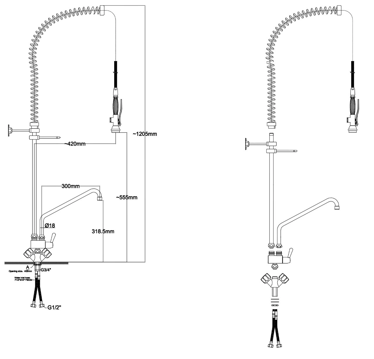 - Výška: 120,5 cm – Umožňuje pohodlnou manipulaci i u velkých dřezů a mytí většího nádobí a kuchyňských zařízení.