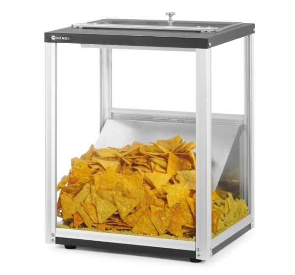 Ohřívač nachos HENDI model 282779 je ideálním zařízením pro všechna zařízení, která chtějí svým zákazníkům servírovat křupavé nachos nebo teplý popcorn. Díky schopnosti udržovat konstantní teplotu až 55 °C zůstávají nachos křupavé a chutné po delší dobu. Jedná se o nepostradatelný spotřebič pro restaurace, bary, kina a akce všeho druhu.